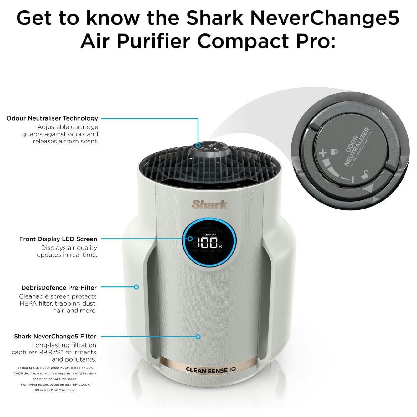 • Shark HP072UK Shark NeverChange5 Air Purifier Compact Pro - Dove