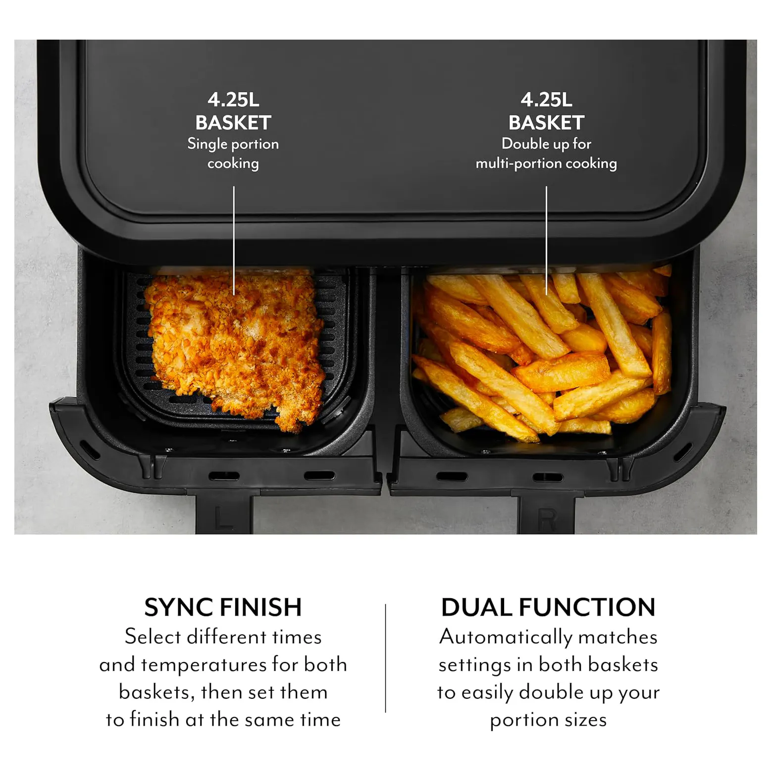 • 8.5L capacity2 x 4.25 Litre Cooking Baskets