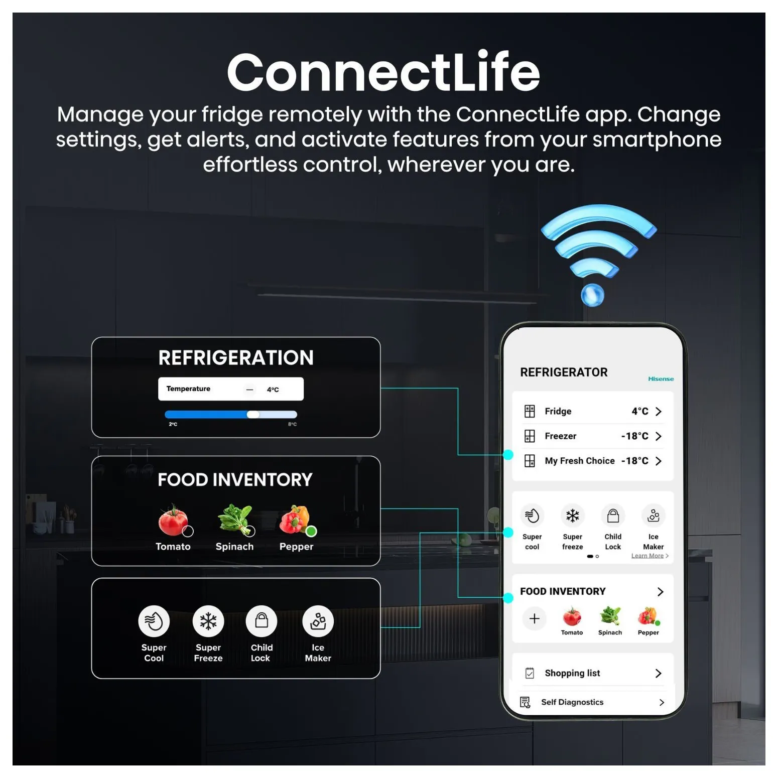 Hisense RQ5P640SYSD American Fridge Freezer in Stainless Steel with Ice & W