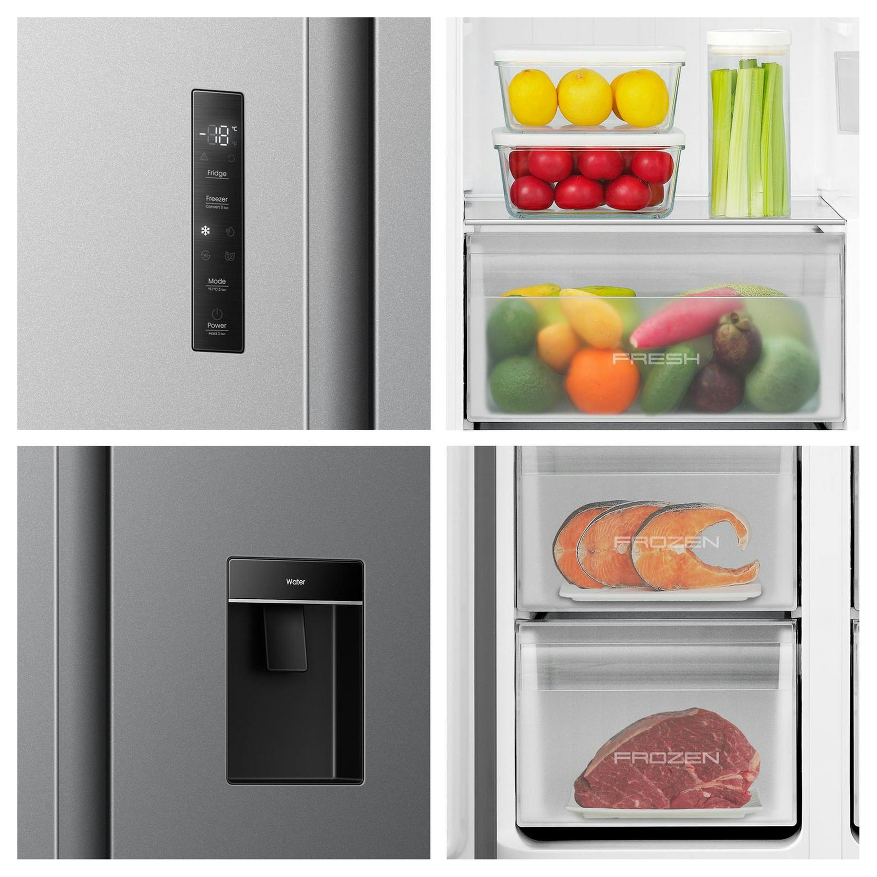 • Hisense MS91558DES American Fridge Freezer in Silver with Water Non Plumbe
