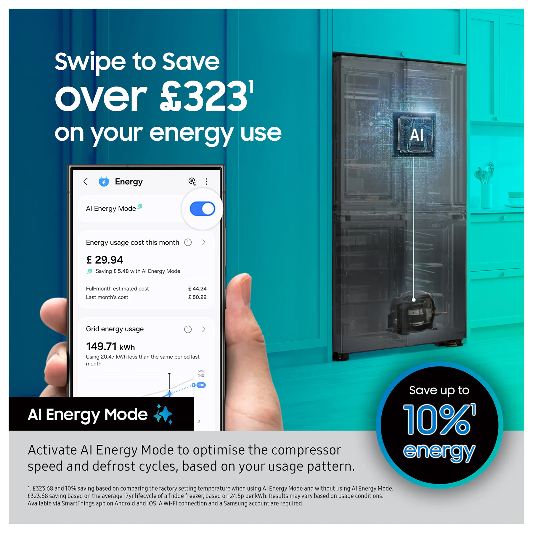 • Samsung RS70F65KETEU Series 6 American Fridge Freezer in Silver with Ice & W