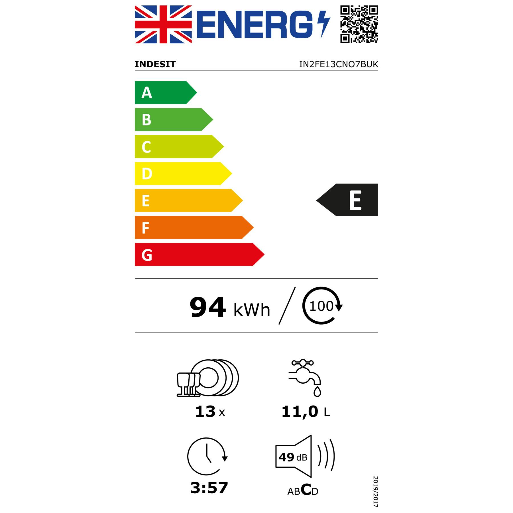 Indesit IN2FE13CNO7B 60cm Dishwasher in Black 13 Place Setting E Rated Push&