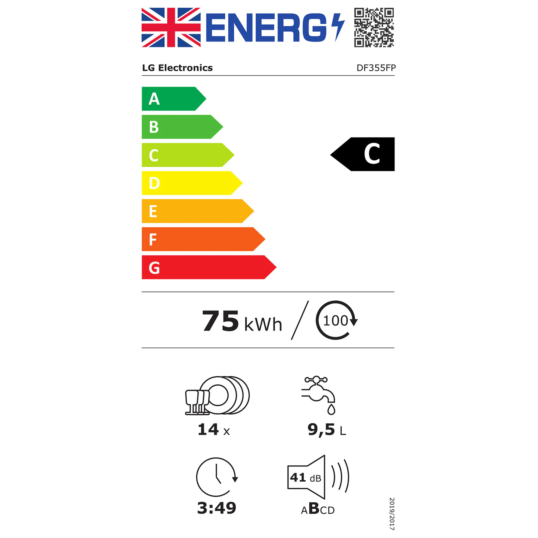 LG DF355FP 60cm Dishwasher in Silver 14 Place Setting C Rated Quad