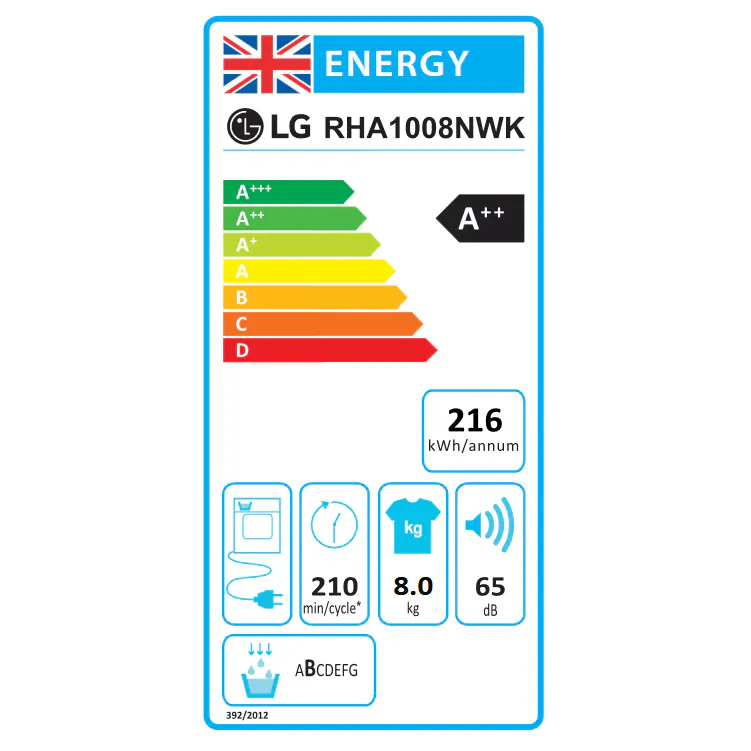 • LG RHA1008NWK 8kg Heat Pump Condenser Dryer in White A++ Rated Air Dr