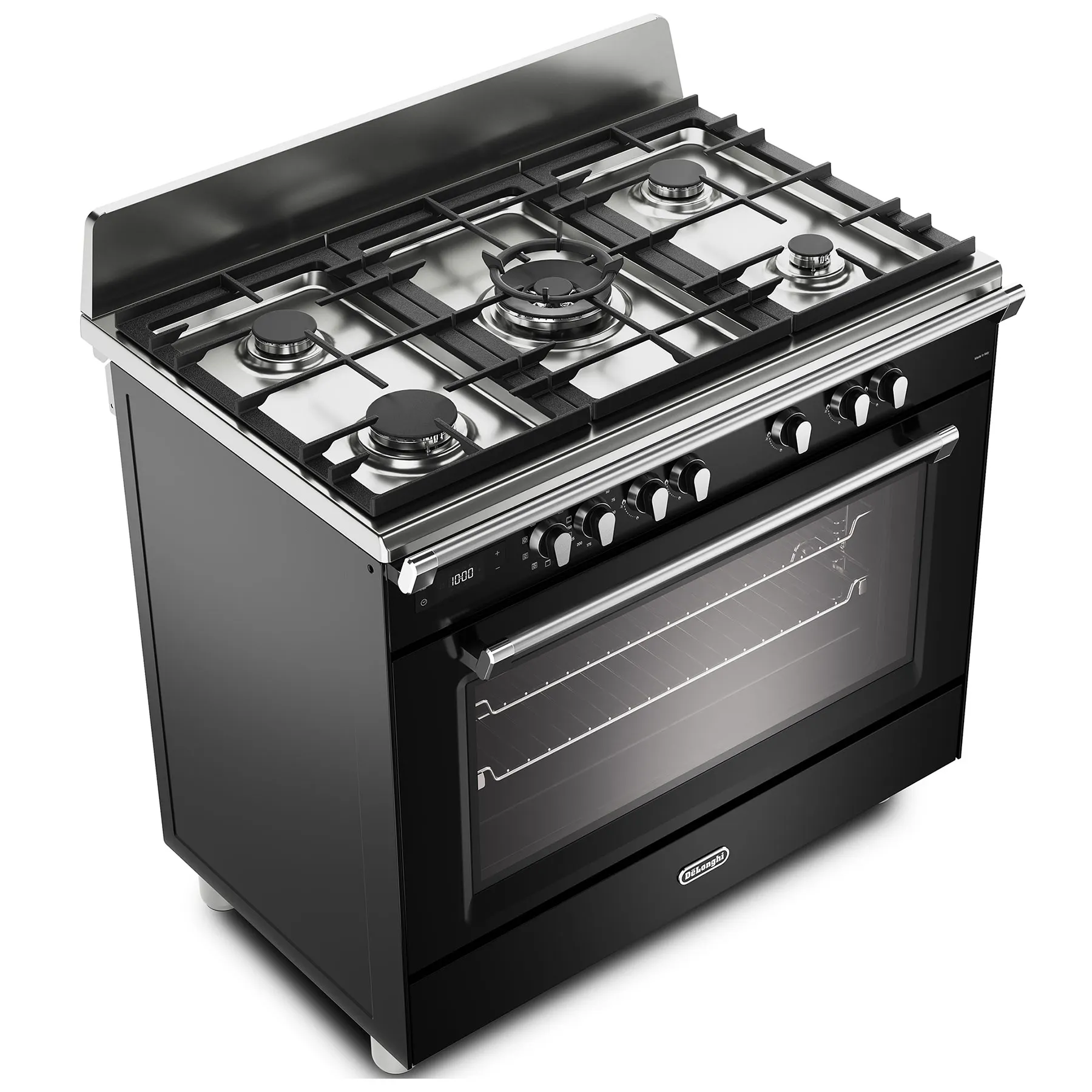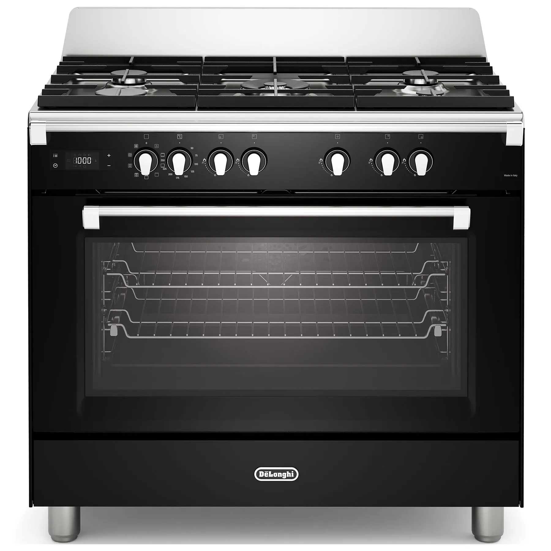DeLonghi BS965MXN 90cm Wide Bassano Dual Fuel Range Cooker in Gloss Black
