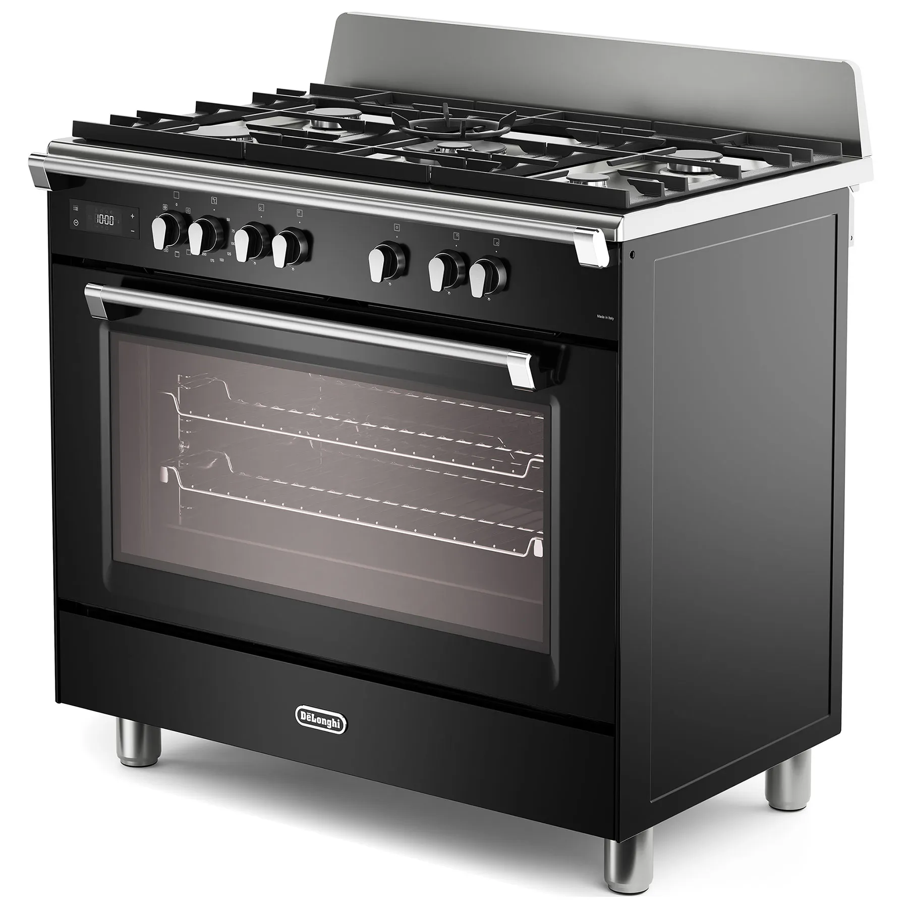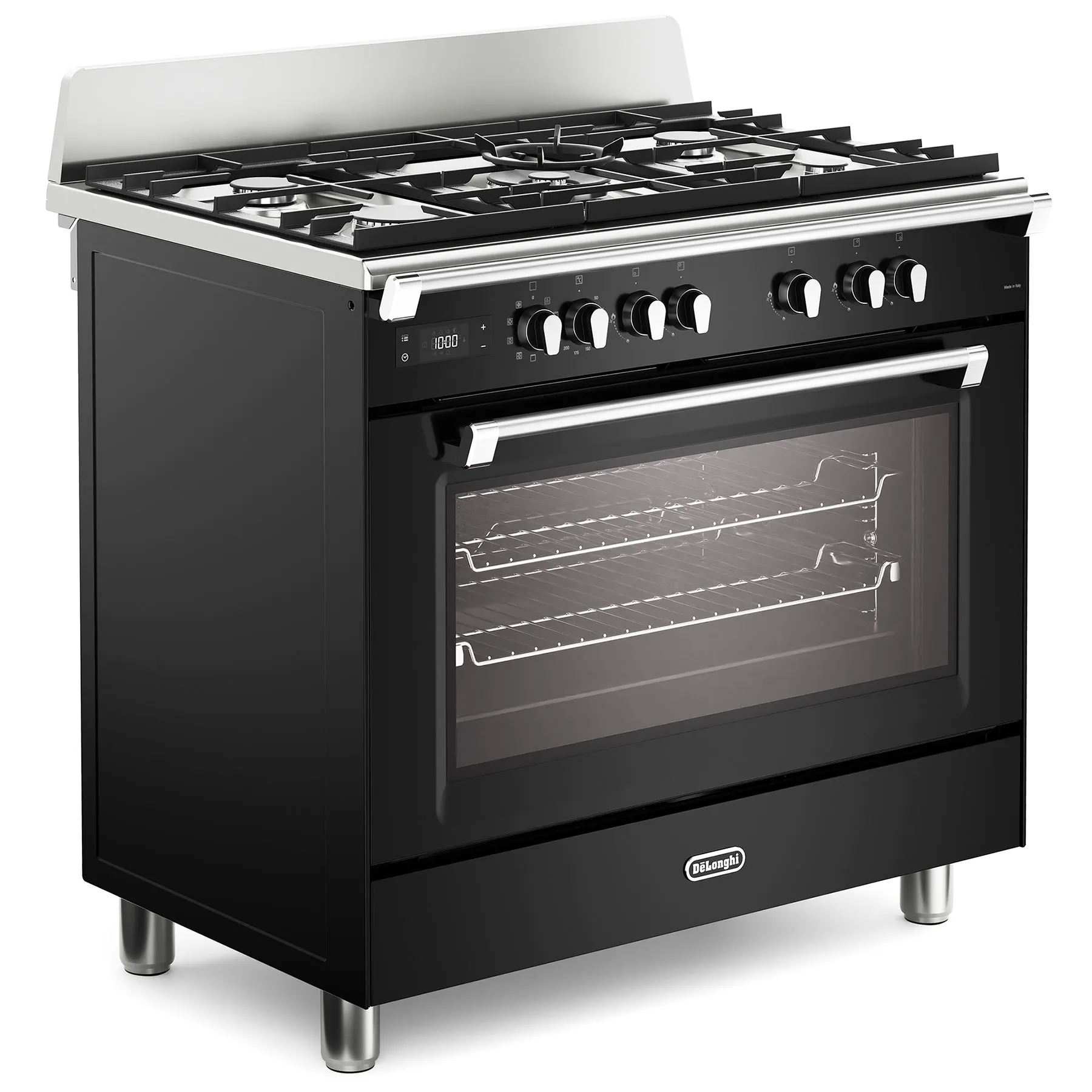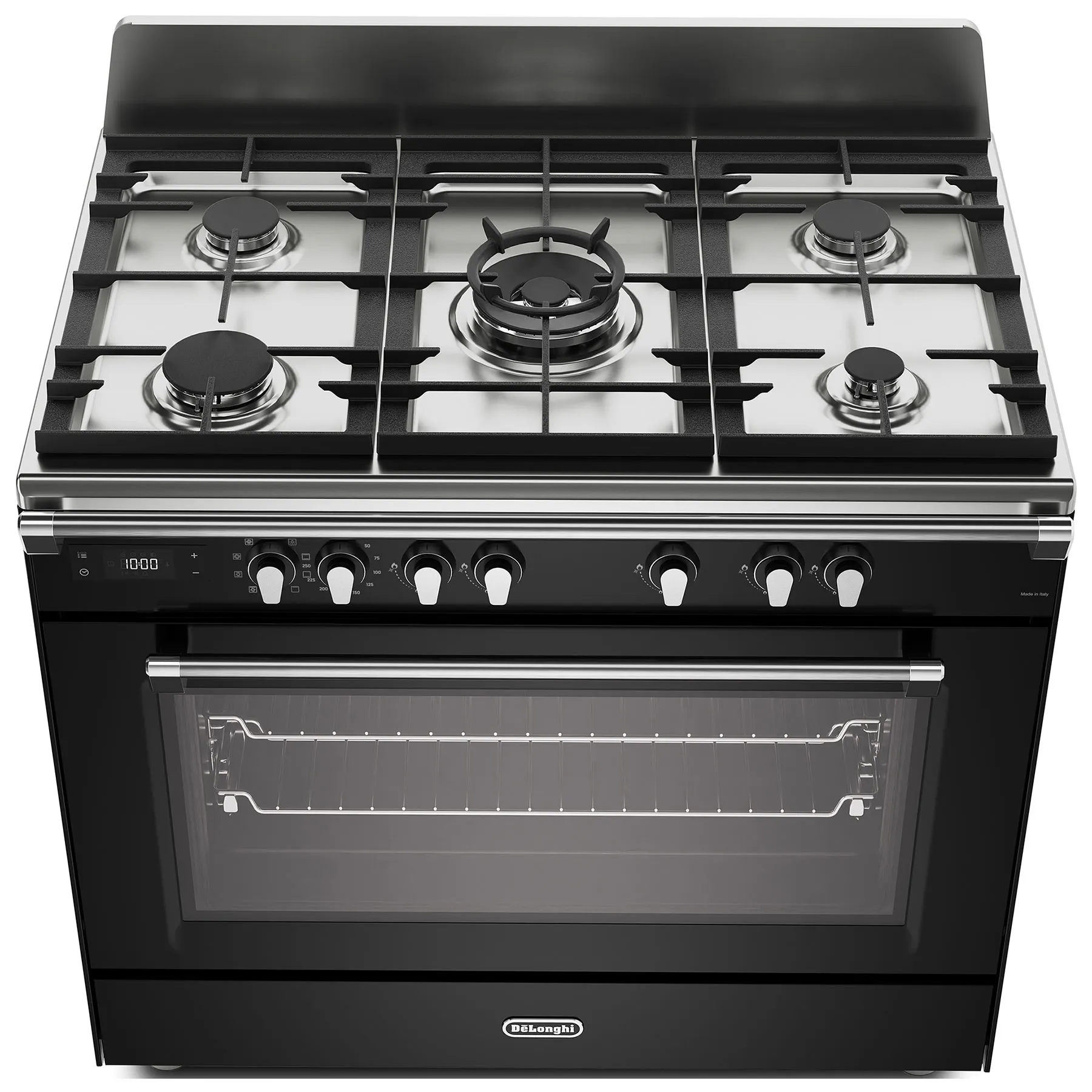 • DeLonghi BS965MXN 90cm Wide Bassano Dual Fuel Range Cooker in Gloss Black
