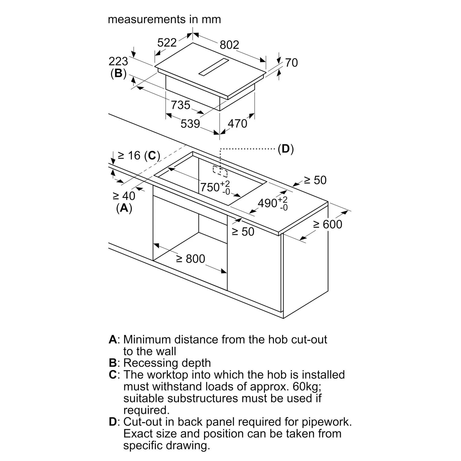 • H223 x W802 x D522 mm