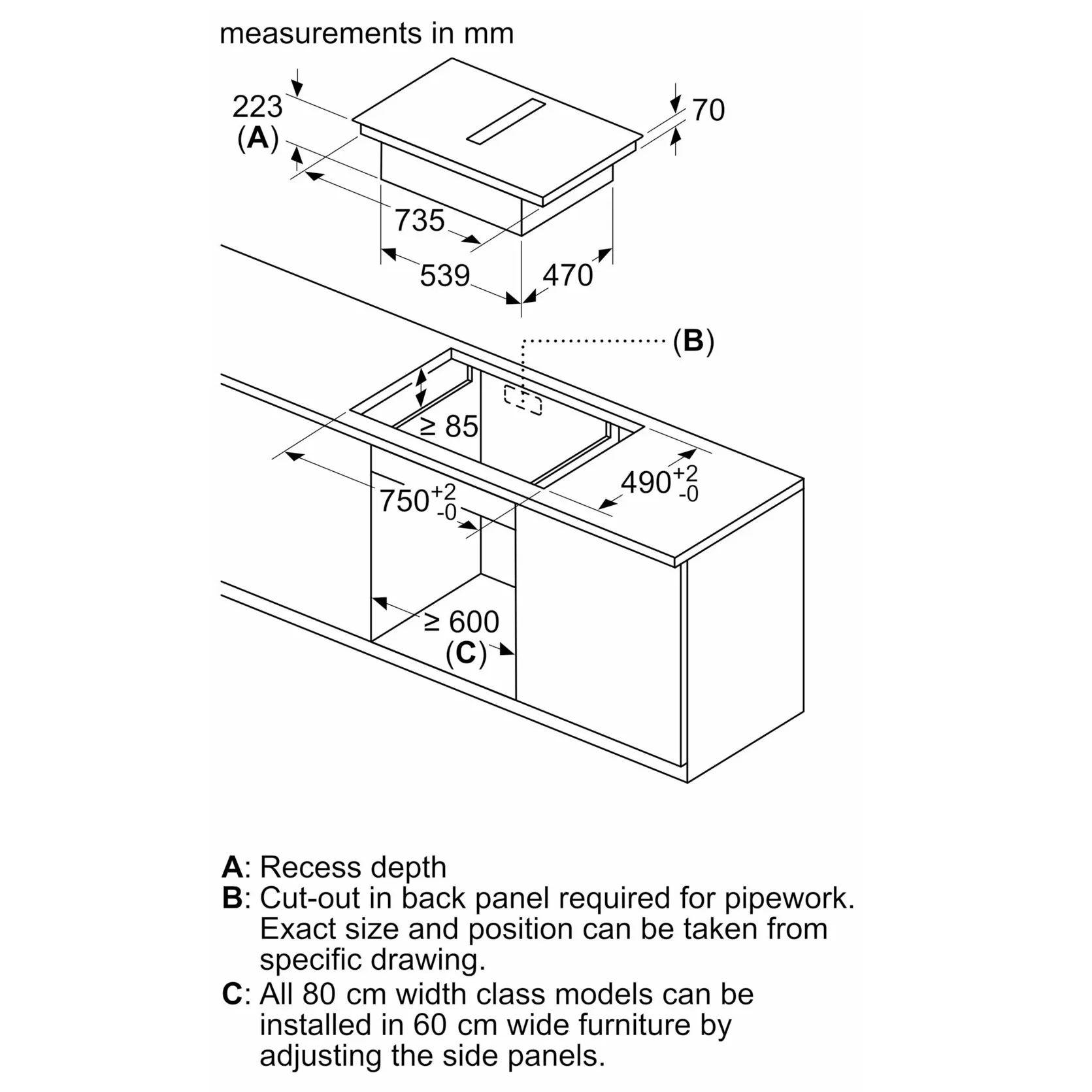 • Neff V68FUX4L0 N90 80cm Induction Hob with Integrated Ventilation Syst