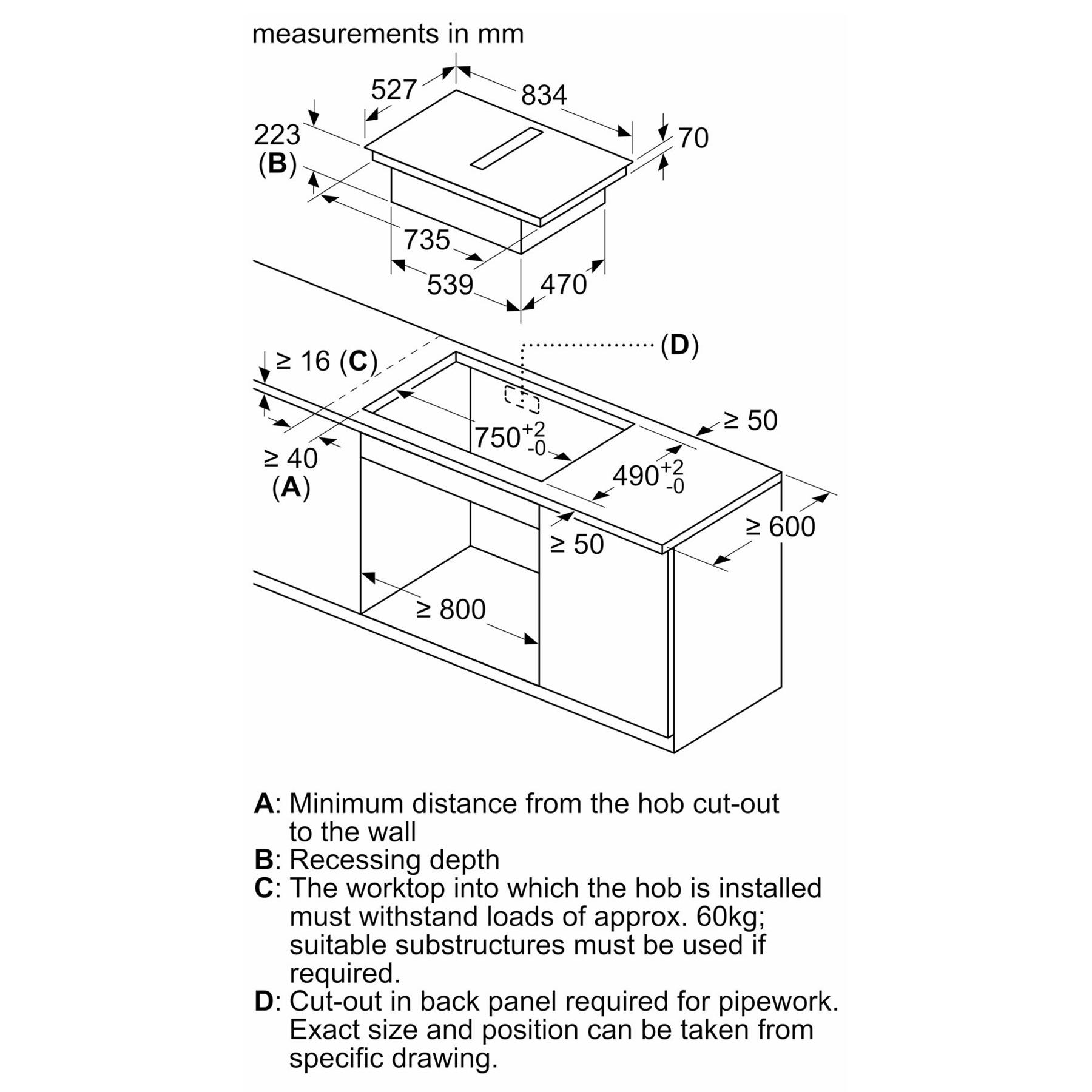 • Neff V68YYX4B0 N90 80cm Induction Hob with Integrated Ventilation in M