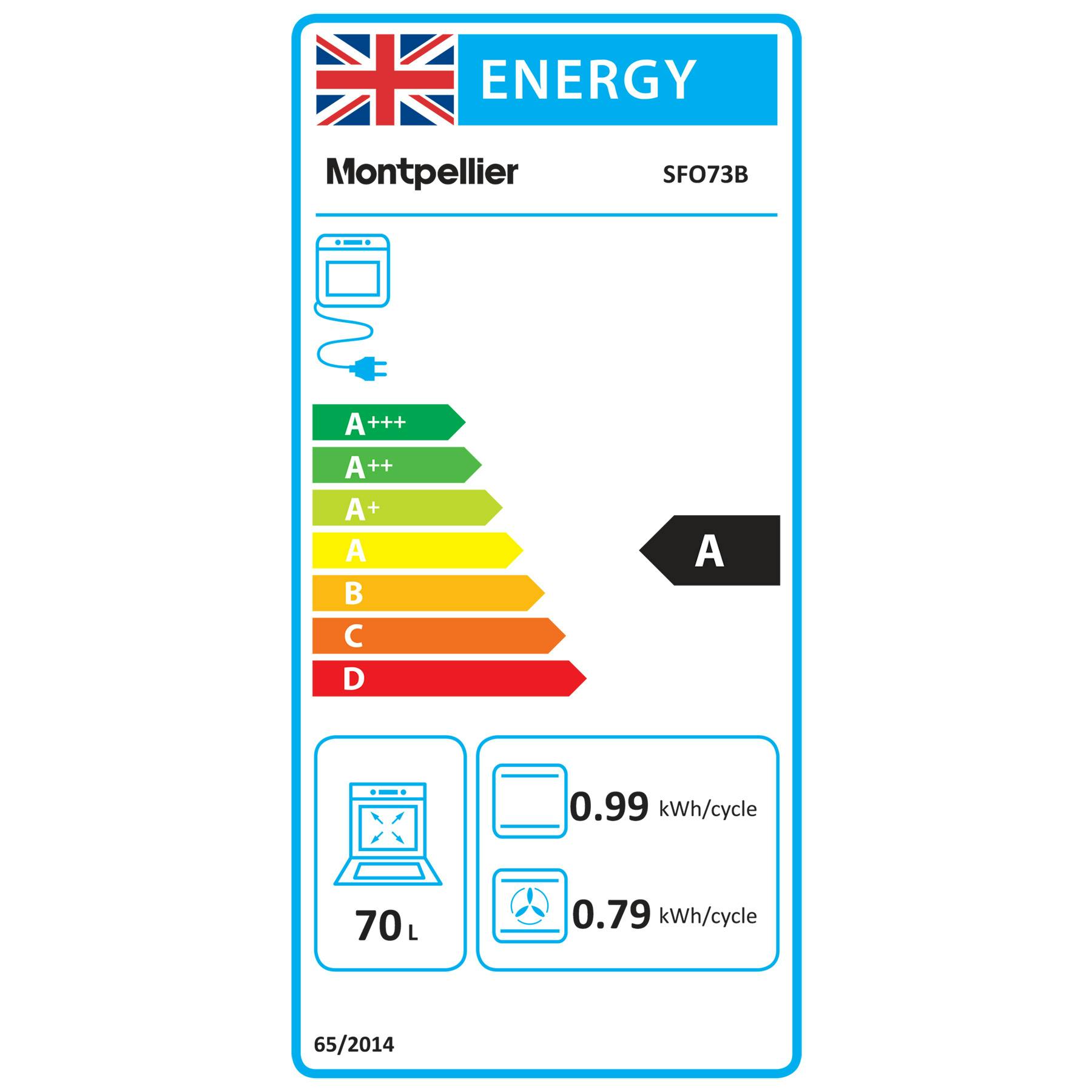 • Montpellier SFO73B Built-In Electric Single Oven in Black 70L A Rated