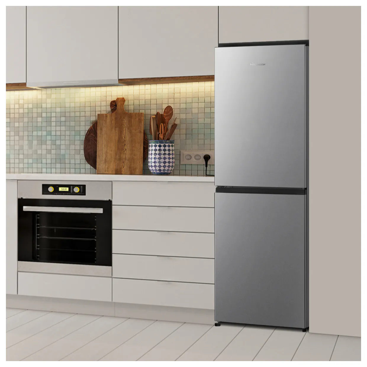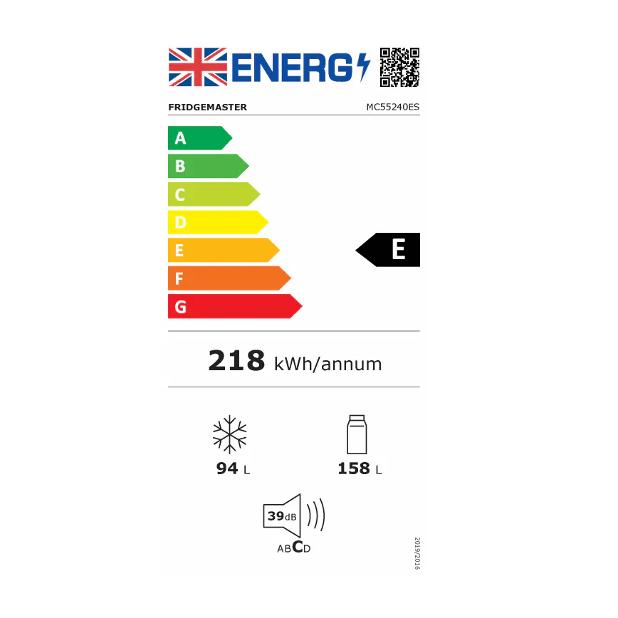 • Fridgemaster MC55240ES 174cm High 50/50 Fridge Freezer in Silver 55cm Wide