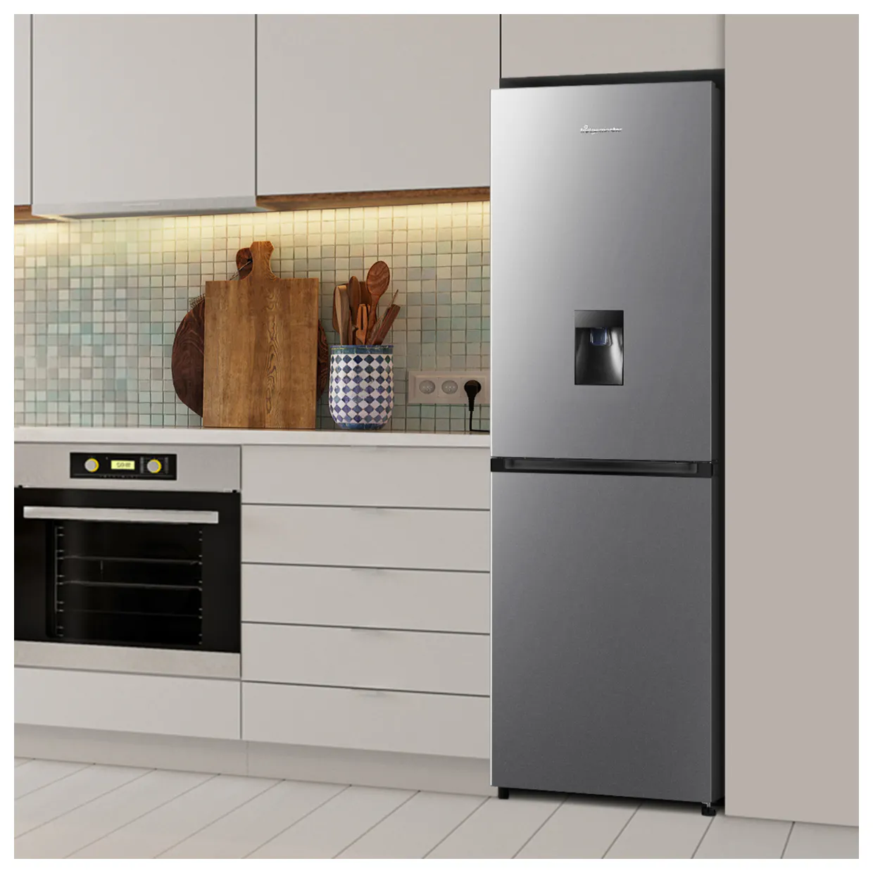 • Fridgemaster MC55251DES 183cm High 50/50 Frost Free Fridge Freezer in Silver wi