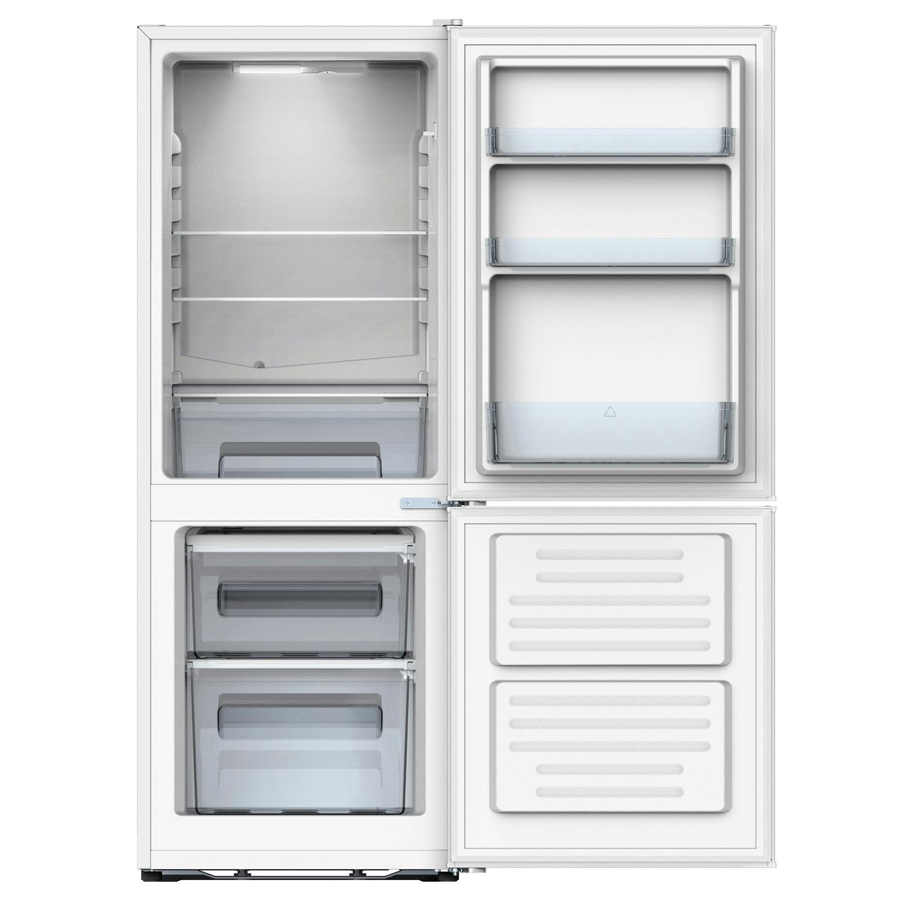 Designed with efficiency in mind, this fridge freezer includes a mechanical adjustable thermostat control for precise temperature regulation. Inside, you’ll find 1 slide-out glass shelf, 1 crystal crisper with a glass cover, and 2 freezer drawers for easy access and organisation of your food. The reversible doors make it adaptable to your kitchen layout, ensuring a seamless fit.