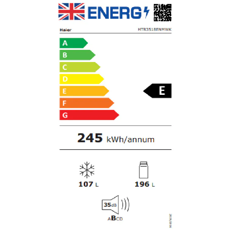 Haier HTR3518ENMWK 185cm High 60/40 Frost Free Fridge Freezer in White 55cm Wide