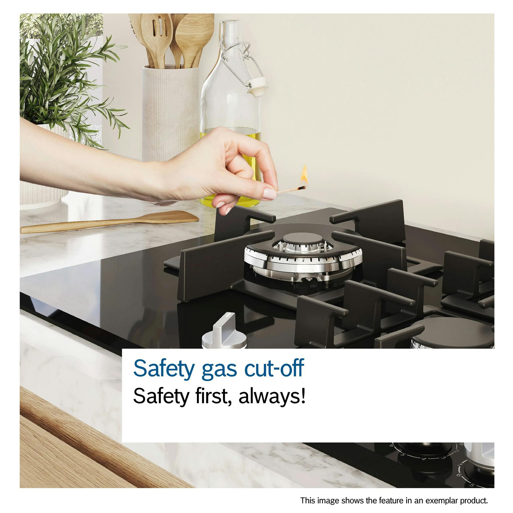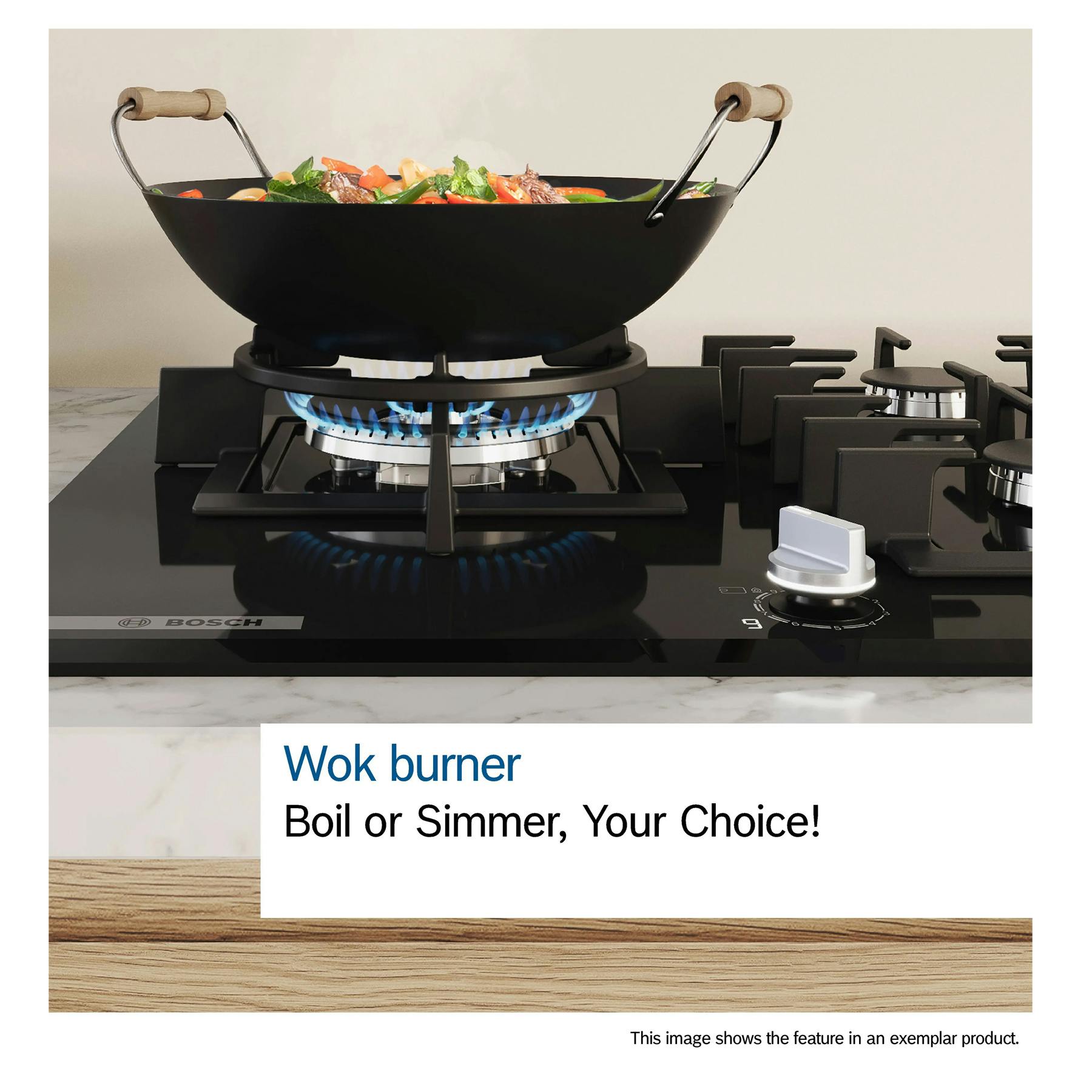 • Bosch PGQ7B5K90 Series 4 75cm 5 Burner Gas Hob Brushed Steel Wok Burner