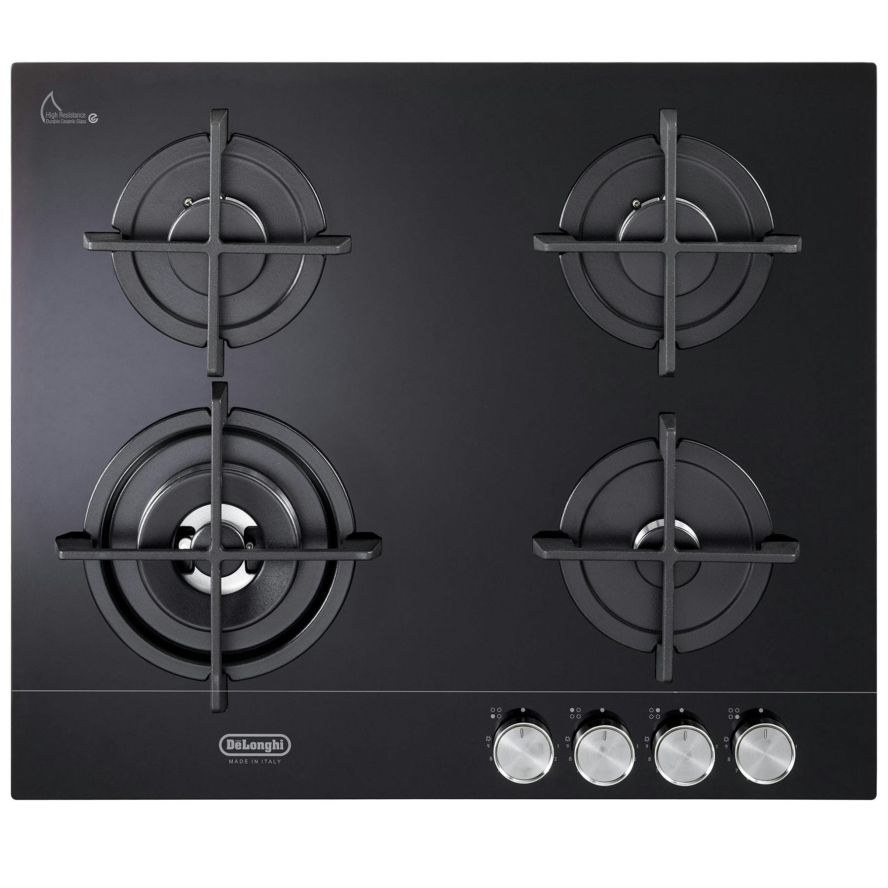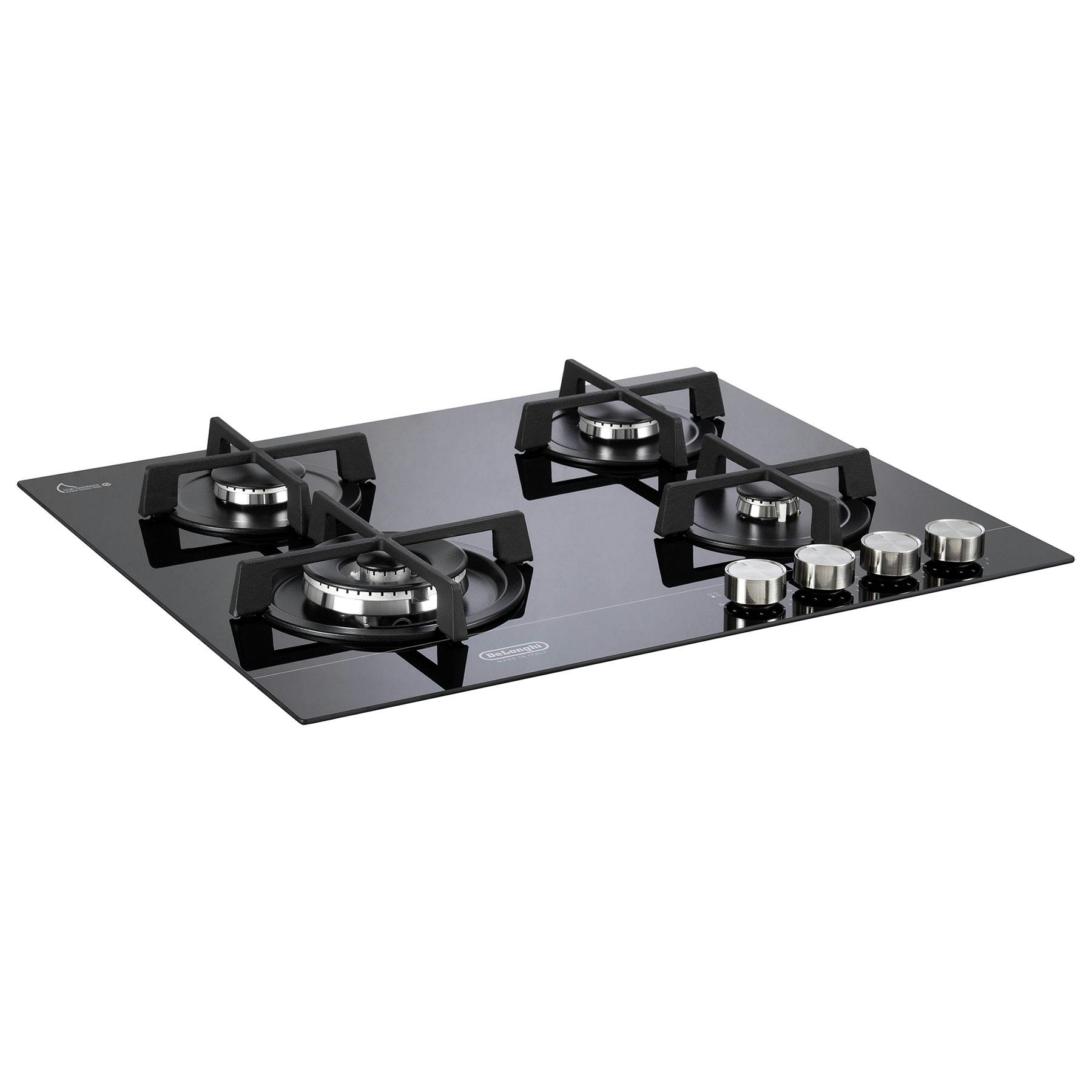 DeLonghi DNSL460NCM 4 Burner Gas Hob in Black Glass Includes 3.5 kW Double