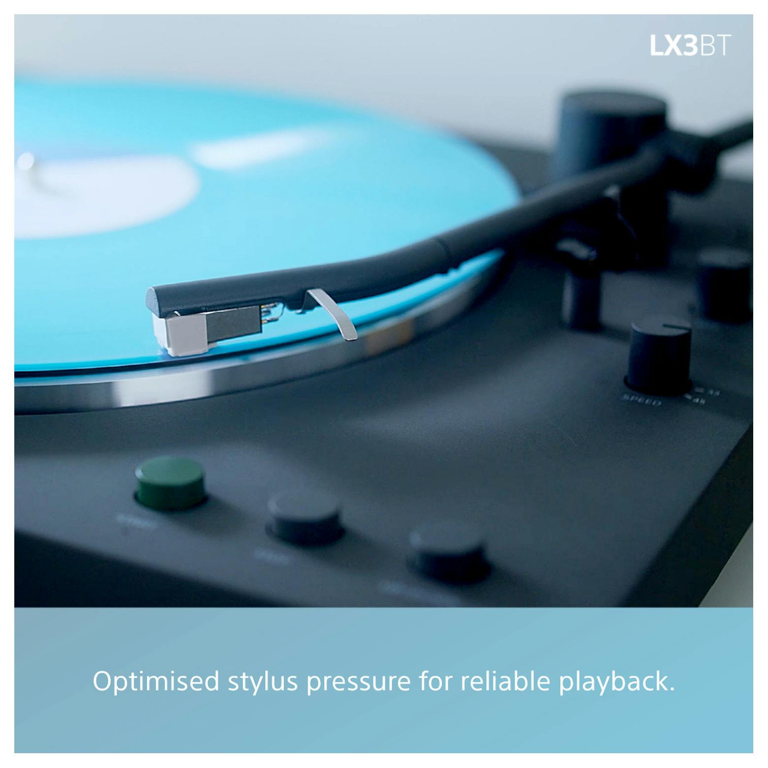 Compliant with modern audio performance standards, the PSLX3BT.CEK combines user-friendly features with quality engineering. Its automatic playback and wireless capabilities bring a new level of ease and enjoyment to your vinyl experience. Choose this Sony turntable to easily rediscover your favourite records with clear sound and stylish design.