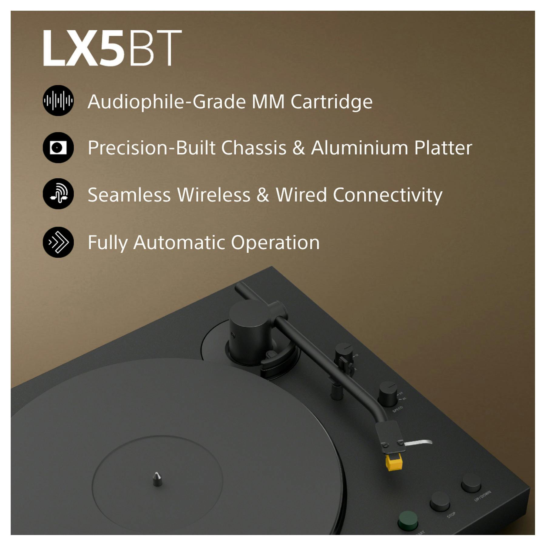 Sony PSLX5BT Auto Playback Wireless Turntable in Pure Black with Premium Cartridge