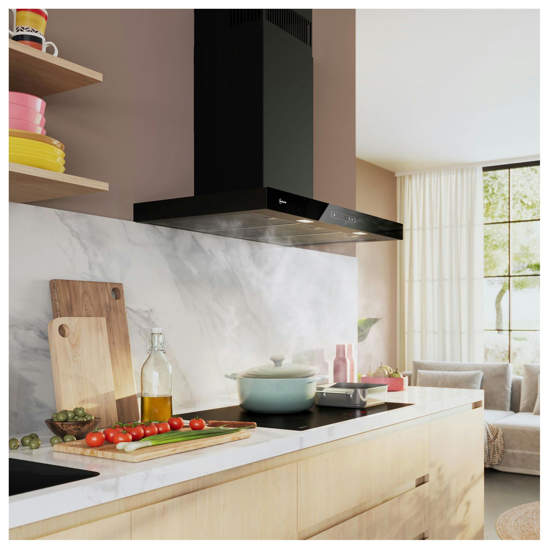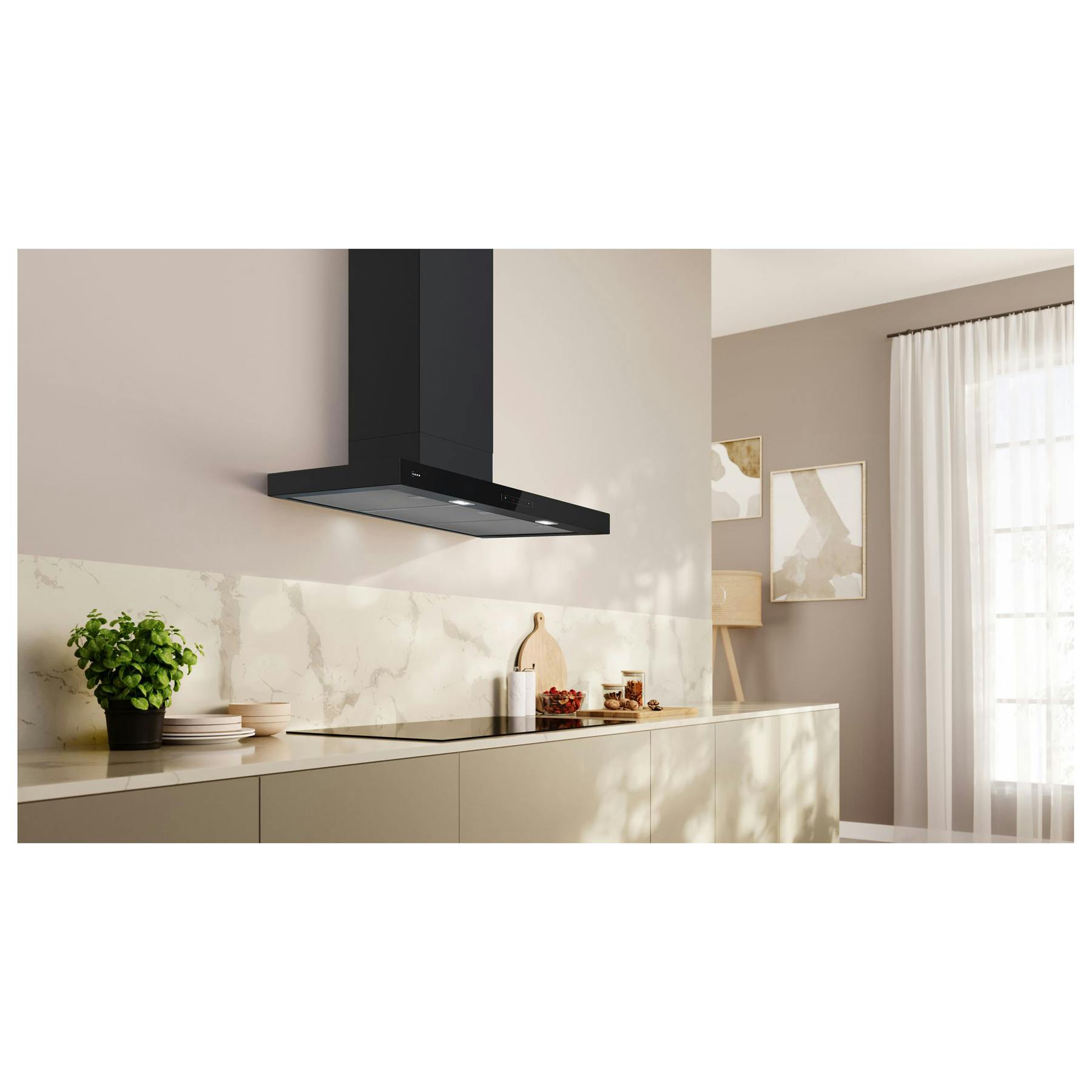 Neff D97BDN2S0B N70 90cm Box Design Chimney Hood in Matt Black 3 Speed with Intensive Setting & Home Connect