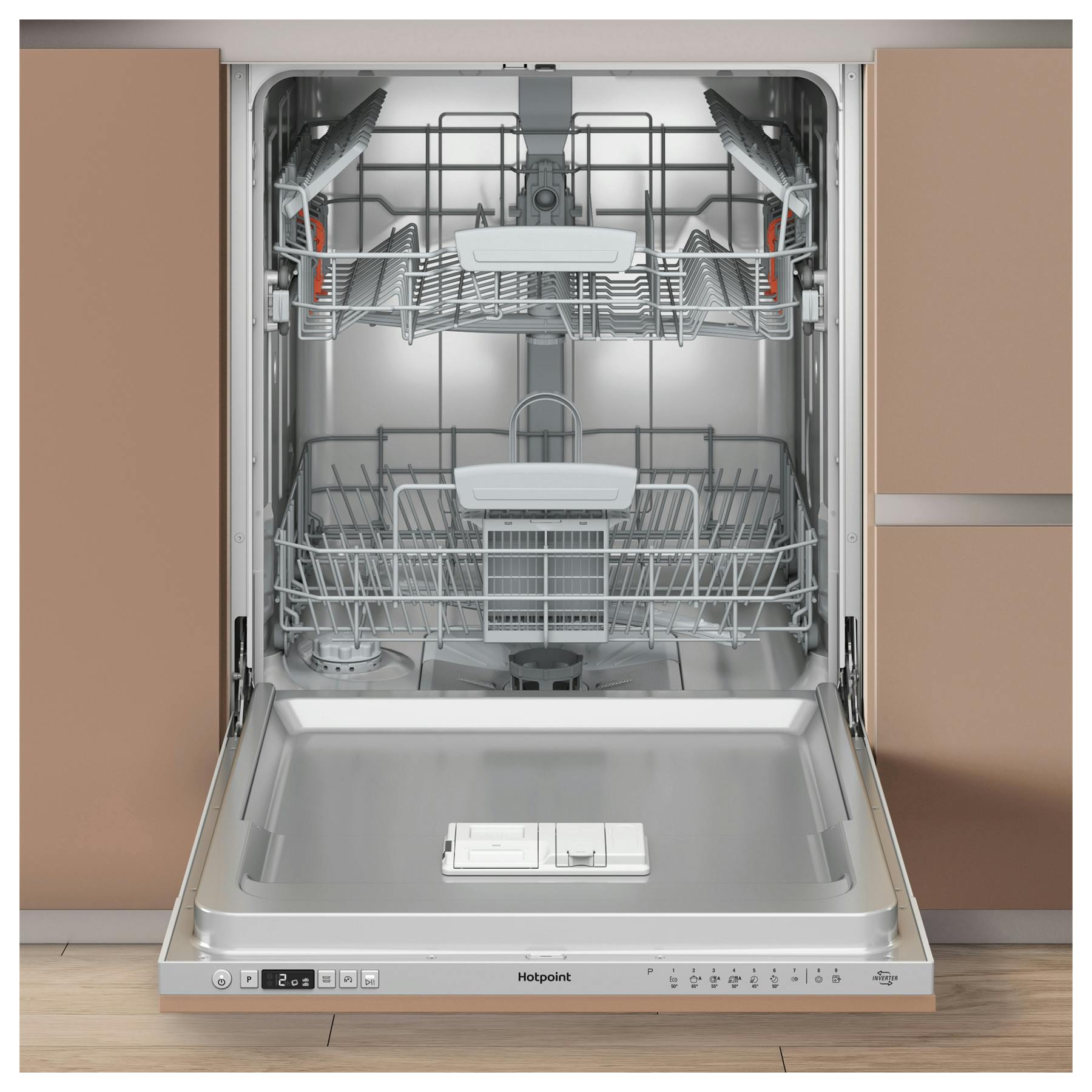 Upgrade your kitchen with the Hotpoint H2IC14BN7A0UK Integrated Dishwasher, a full-size built-in appliance that blends seamlessly with your units while delivering powerful cleaning. With space for 14 place settings, it’s perfect for families or households that need extra capacity.