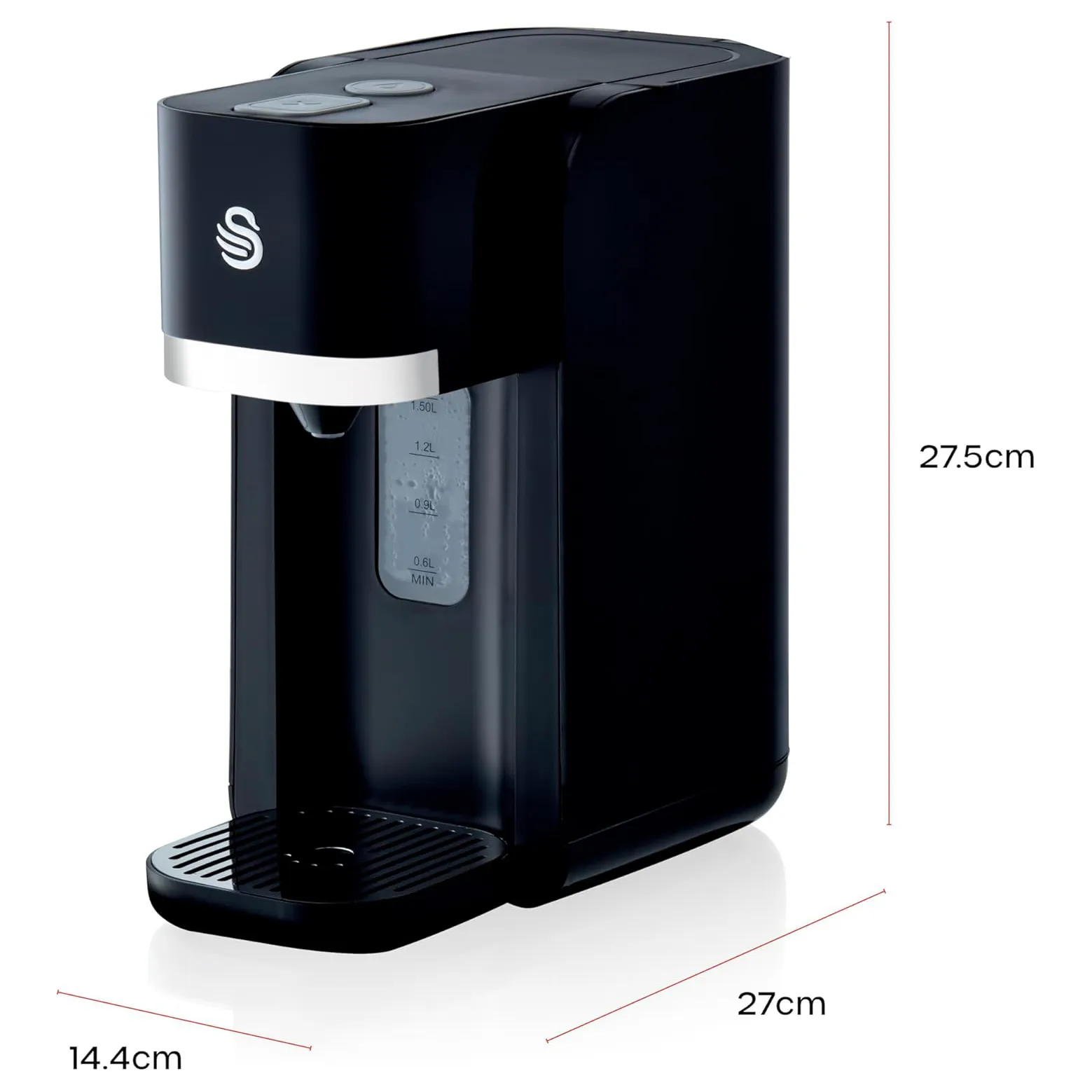 The Swan Instant Hot Water Dispenser is designed to simplify your daily routine. If you need a quick drink or snack, boil a cup of water in less than a minute with a simple button press. Whether you're brewing tea, making coffee, or preparing instant noodles, this dispenser delivers perfect results every time. It only heats the water you need, saving time, energy, and reducing waste. Its 1.5 litre water tank makes up to 6 drinks from one fill to enjoy drinks with your loved ones. To refill the dispenser, simply flip the lid open and pour water with a jug or fill up at the sink for versatility. This one cup hot water dispenser features an intuitive two-touch operation to make dispensing effortless. One button starts dispensing water and the other turns it off. You’ll also be able to easily monitor how much water is left through the illuminated gauge. To avoid a messy worktop, this one cup hot water dispenser has a removable drip tray with stainless steel cover to collect any the excess water for easy cleaning.