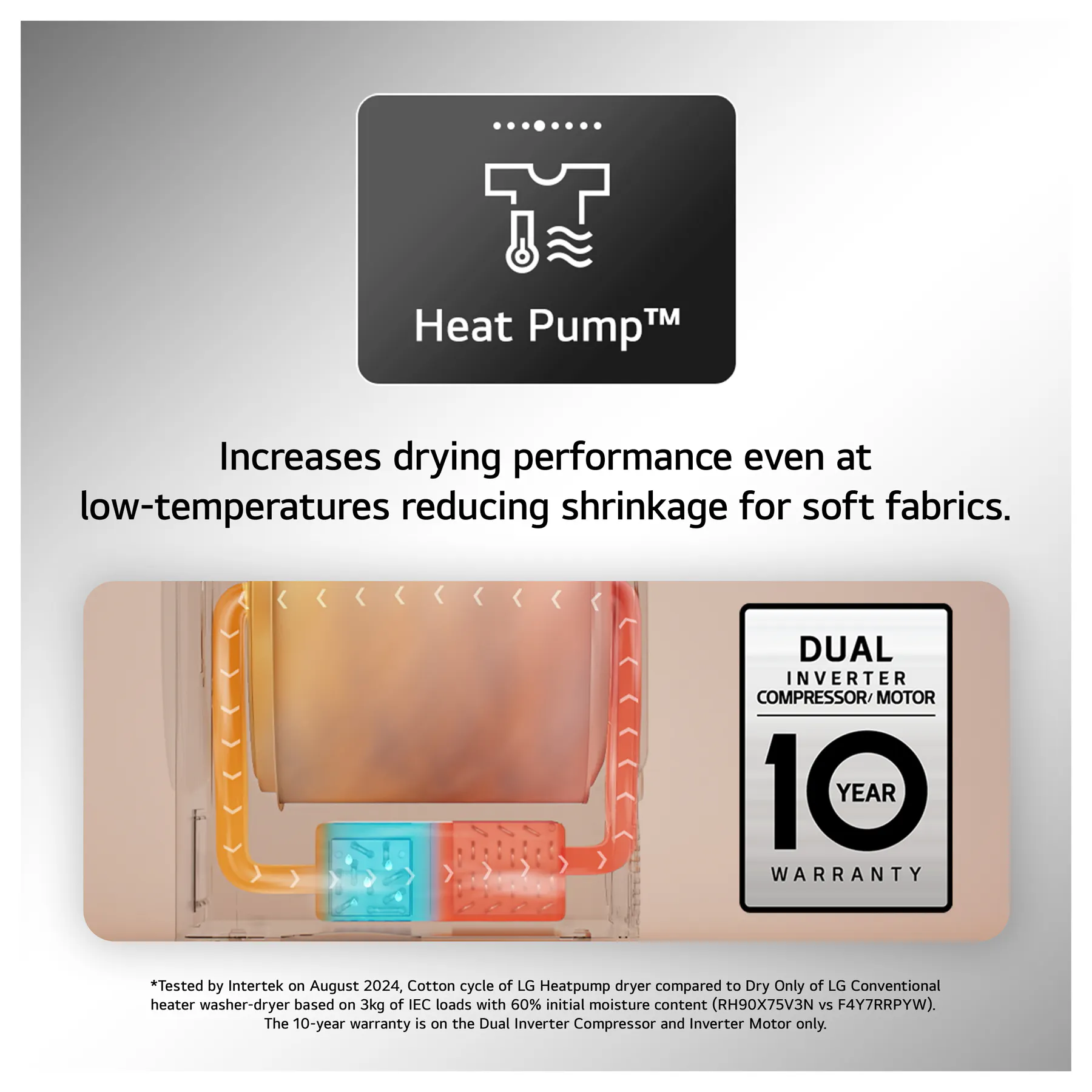 • LG RHX7009TWB 9kg Dual Inverter Heat Pump Condenser Dryer in Glossy W