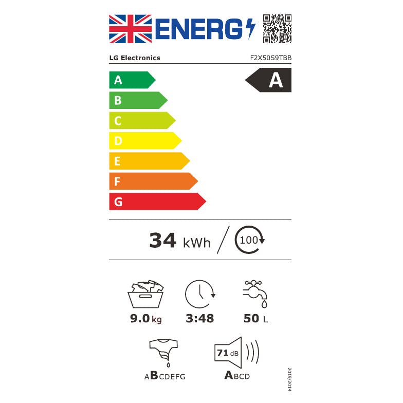 LG F2X50S9TBB 9kg 1200 Spin Washing Machine in Matte Black A Rated Co