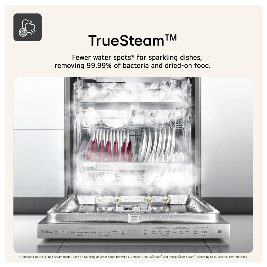 LG DF273FVS 60cm Dishwasher in Silver 14 Place Setting A Rated QuadWash & TrueSteamTechnology