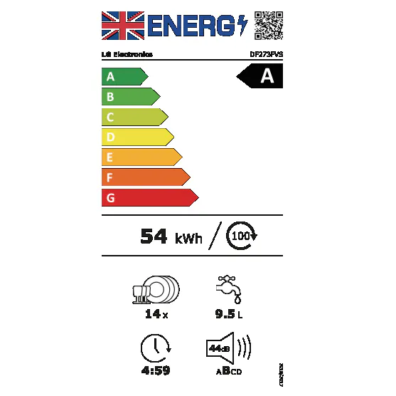 Measurements based on the dishwashers eco programme that provides the best energy and water efficiency.