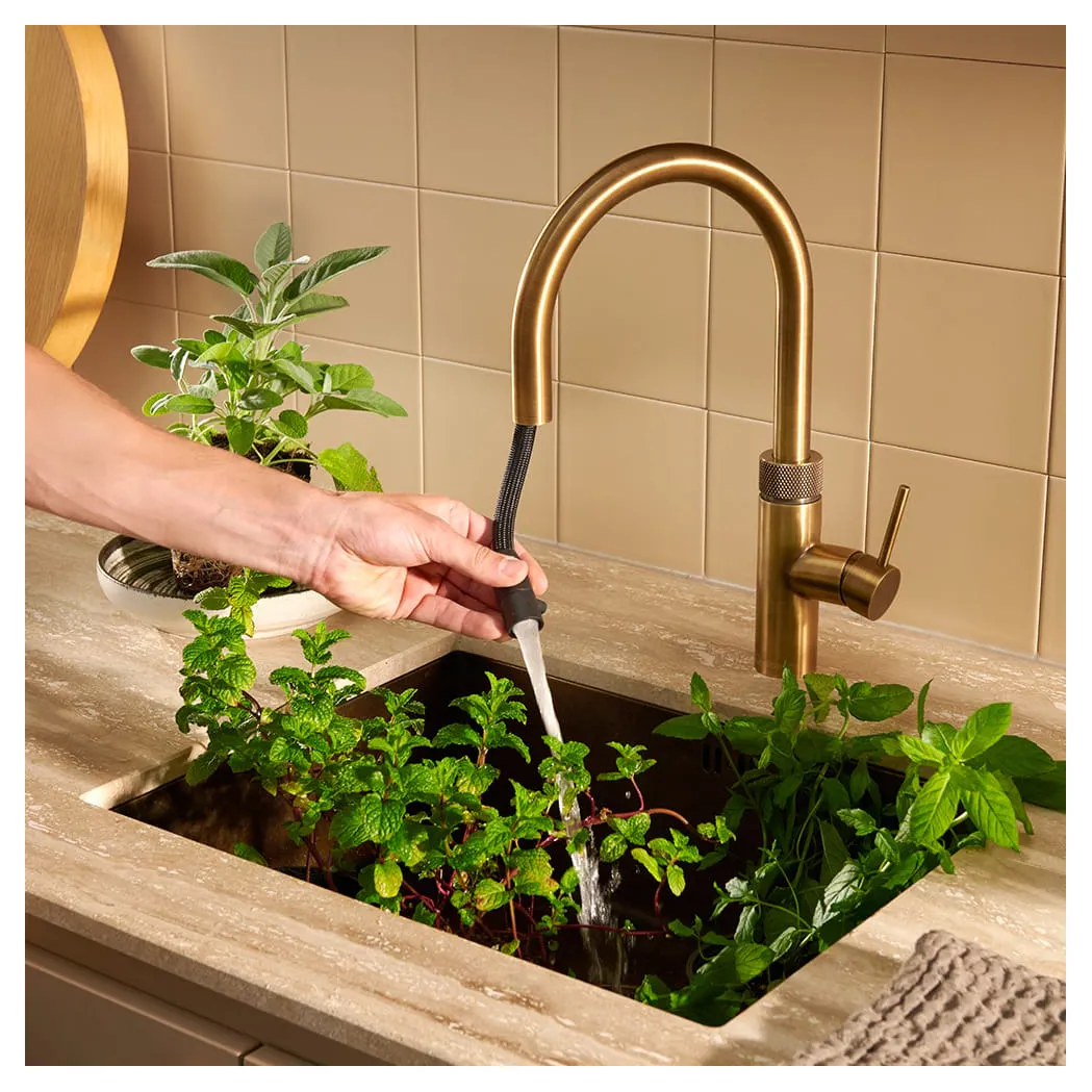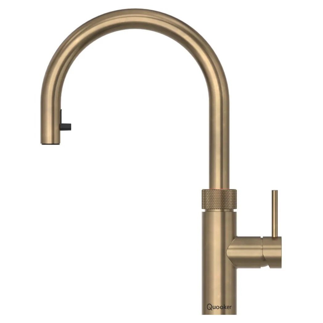 Quooker FXRPTN Flex Round Spout Boiling Water Tap with Flexible Pull Out Hose in Patinated Brass