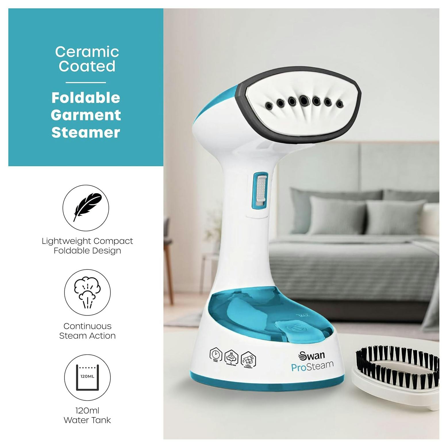 • REMOVABLE BRUSH: The Swan Garment Steamer features a removable brush attachment, making it even more versatile, It gently smooths out fabric fibres while you steam, ensuring your clothes look flawless