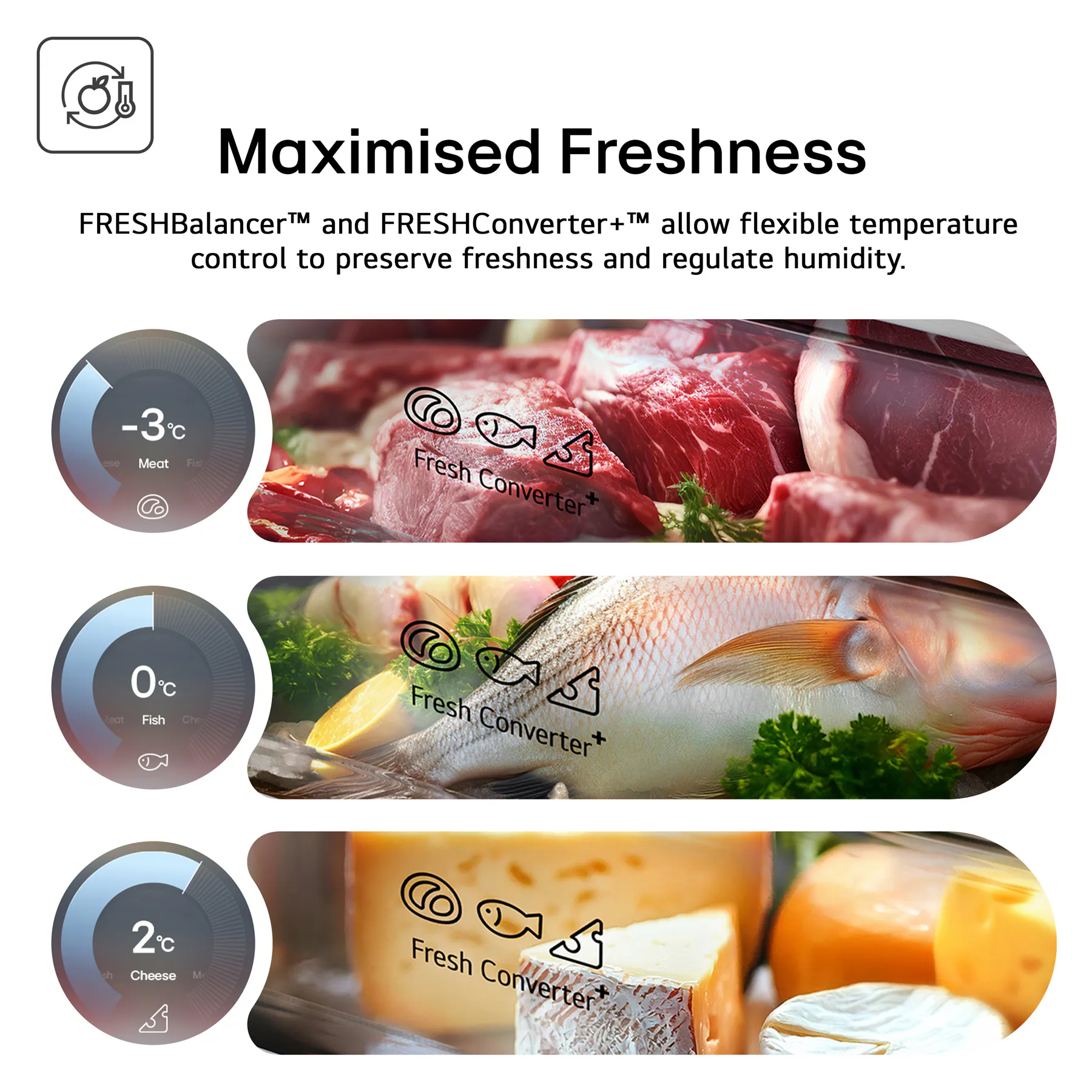 LG GBBW322CPY 203cm High 60/40 Frost Free Fridge Freezer in Stainless Steel 70cm Wide AI Features with AI Fresh