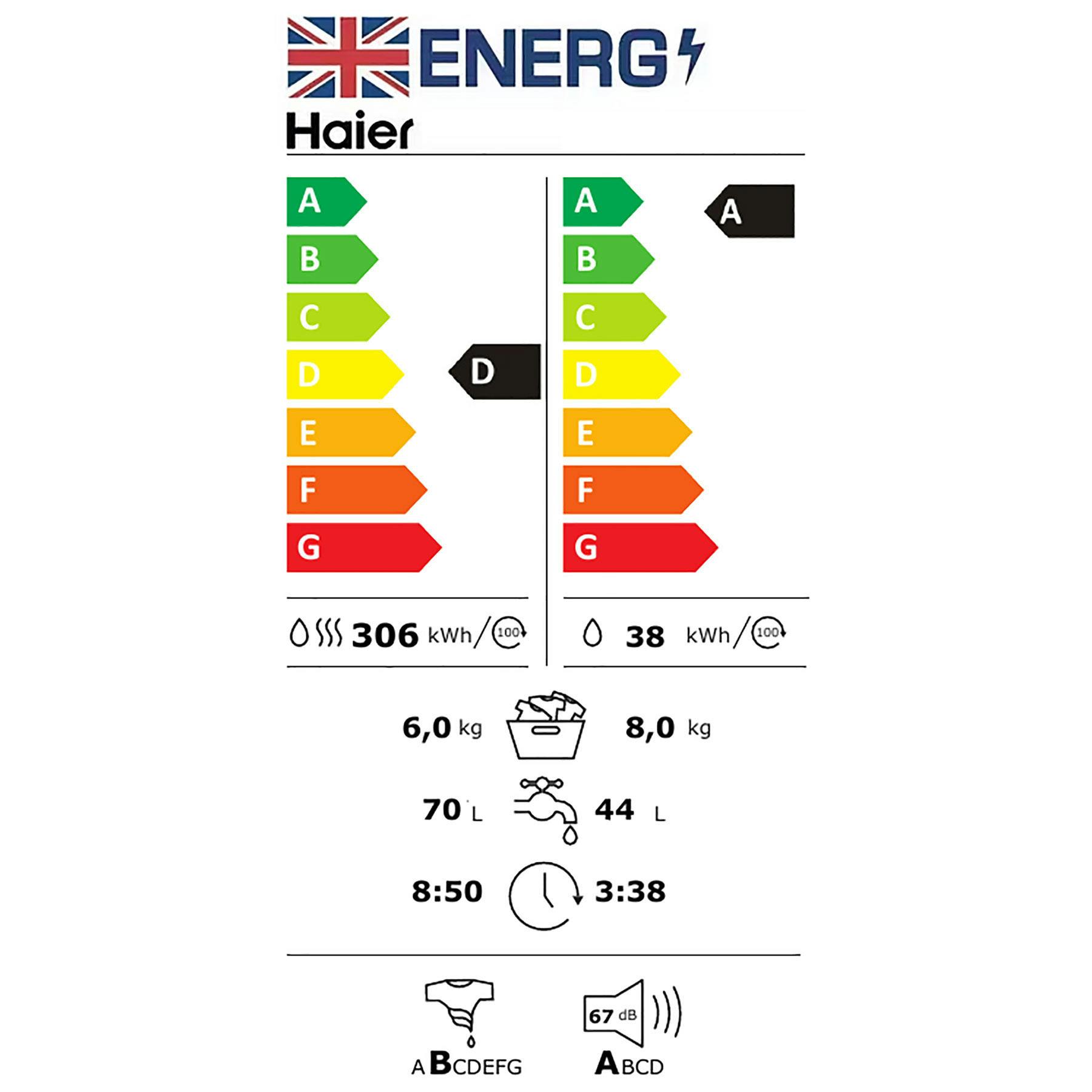• Haier HWD80B14959N I-Pro Series 5 Washer Dryer in White 1400 Spin 8kg/6kg