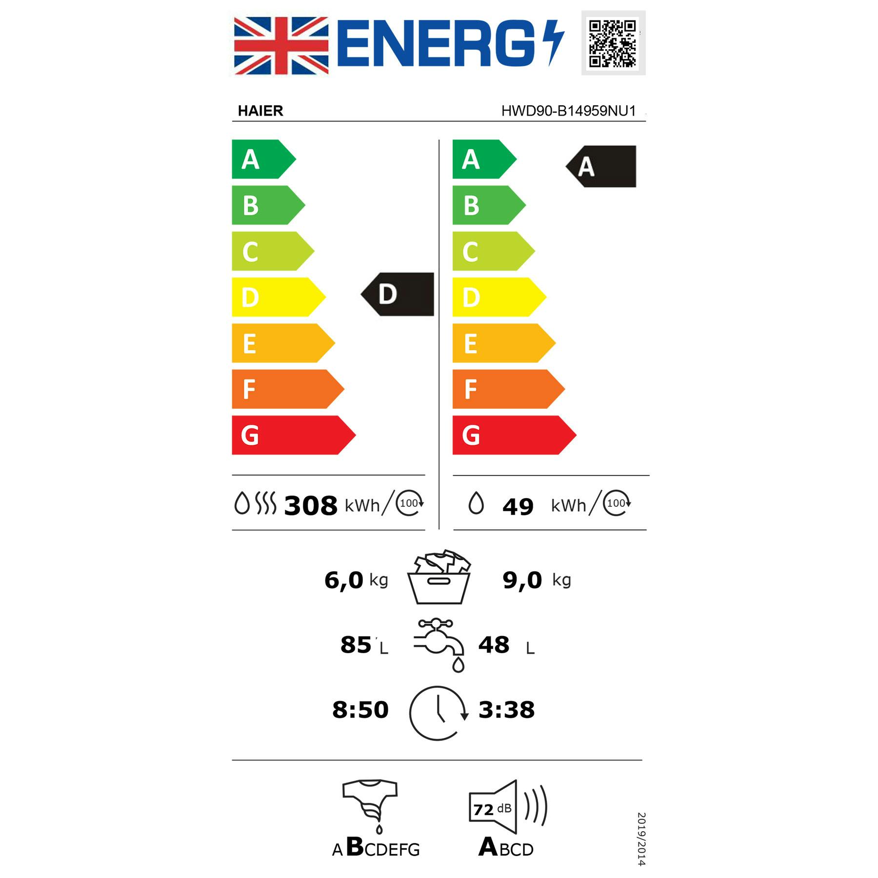 • Haier HWD90B14959N I-Pro Series 5 Washer Dryer in White 1400 Spin 9kg/6kg