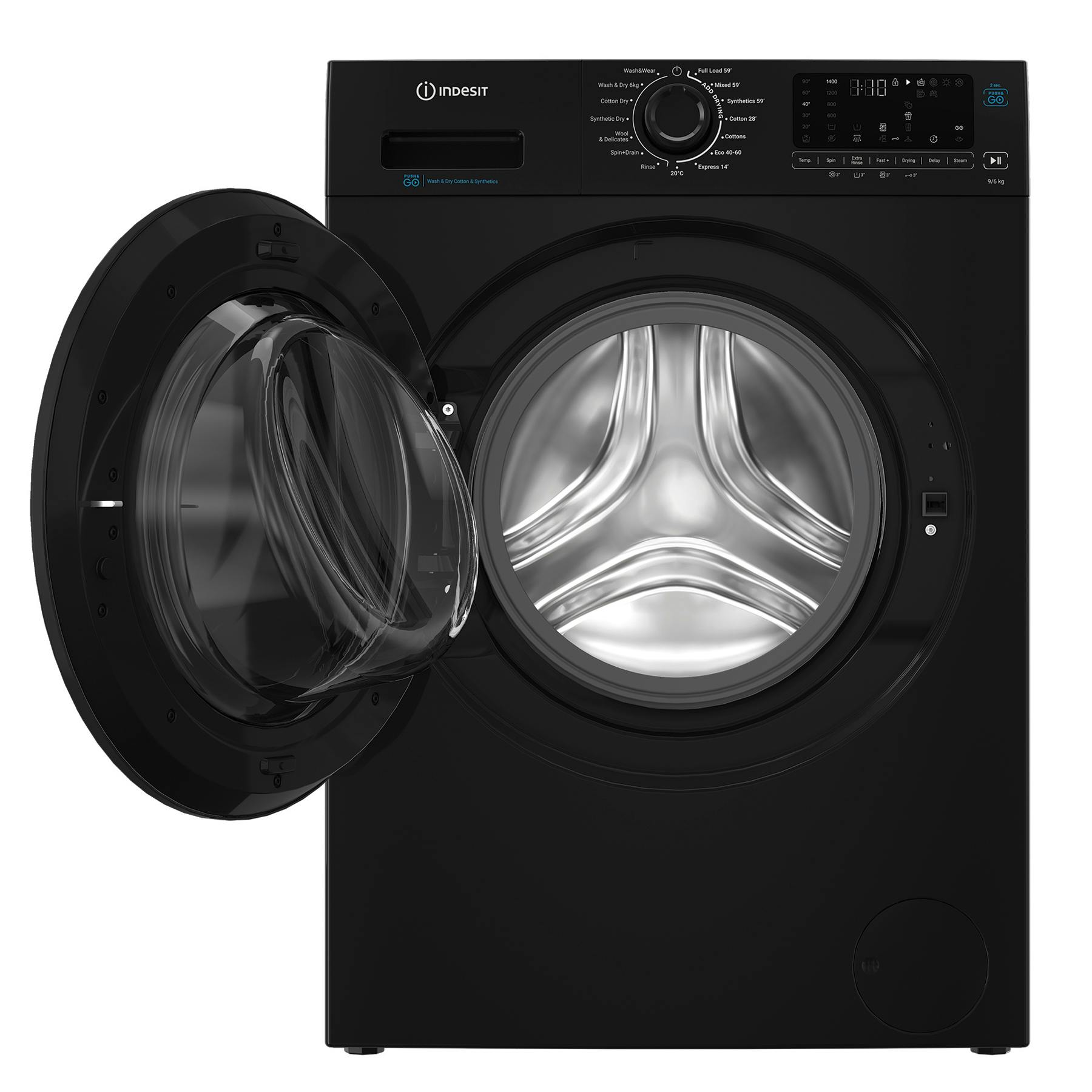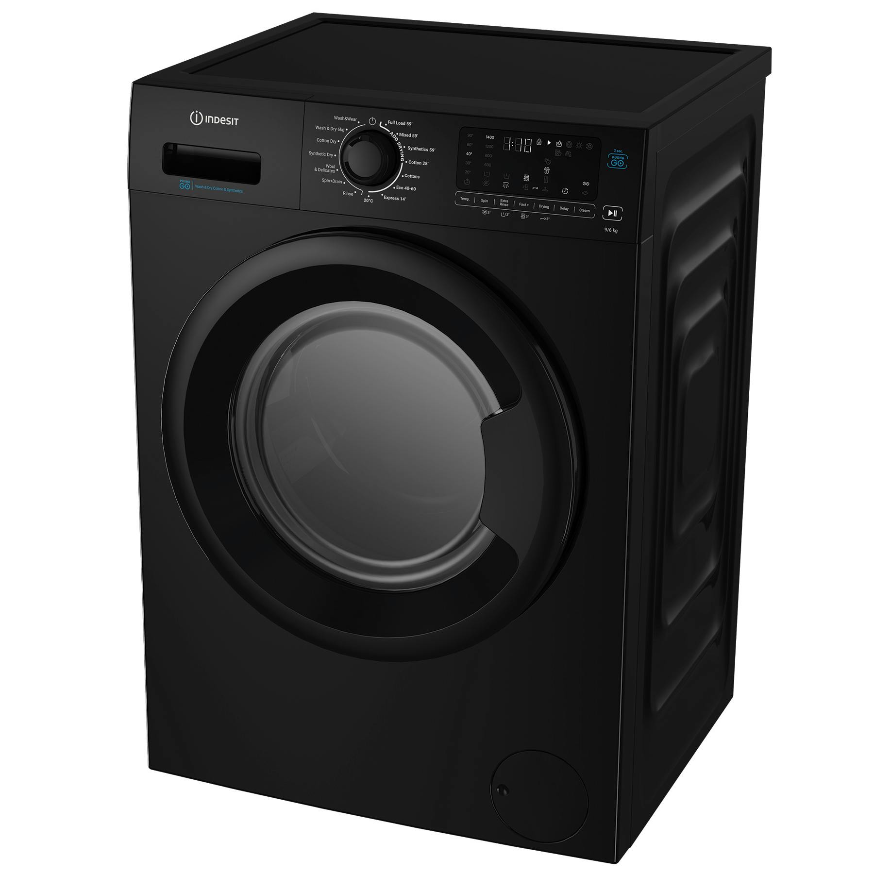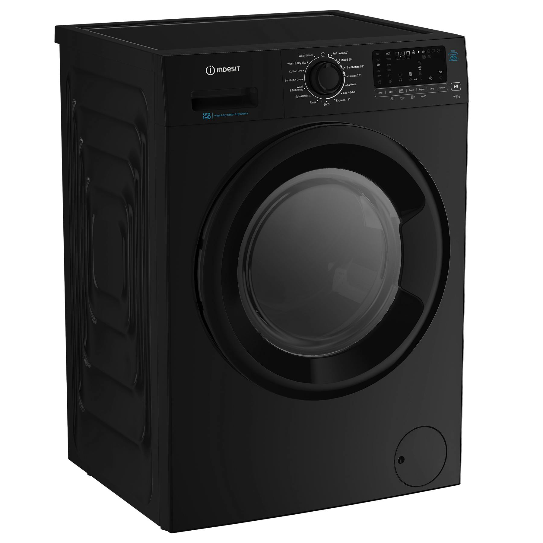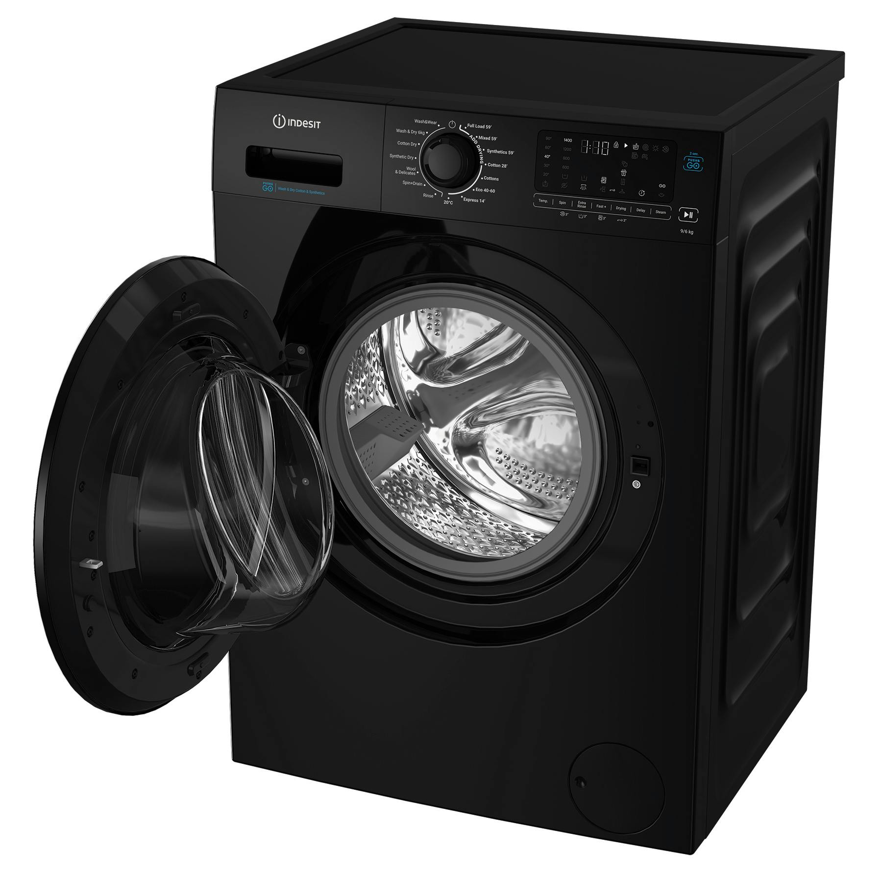 Indesit IDP9646BPUSH Washer Dryer in Black 1400 Spin 9kg/6kg D Rated Push&Go Cycle