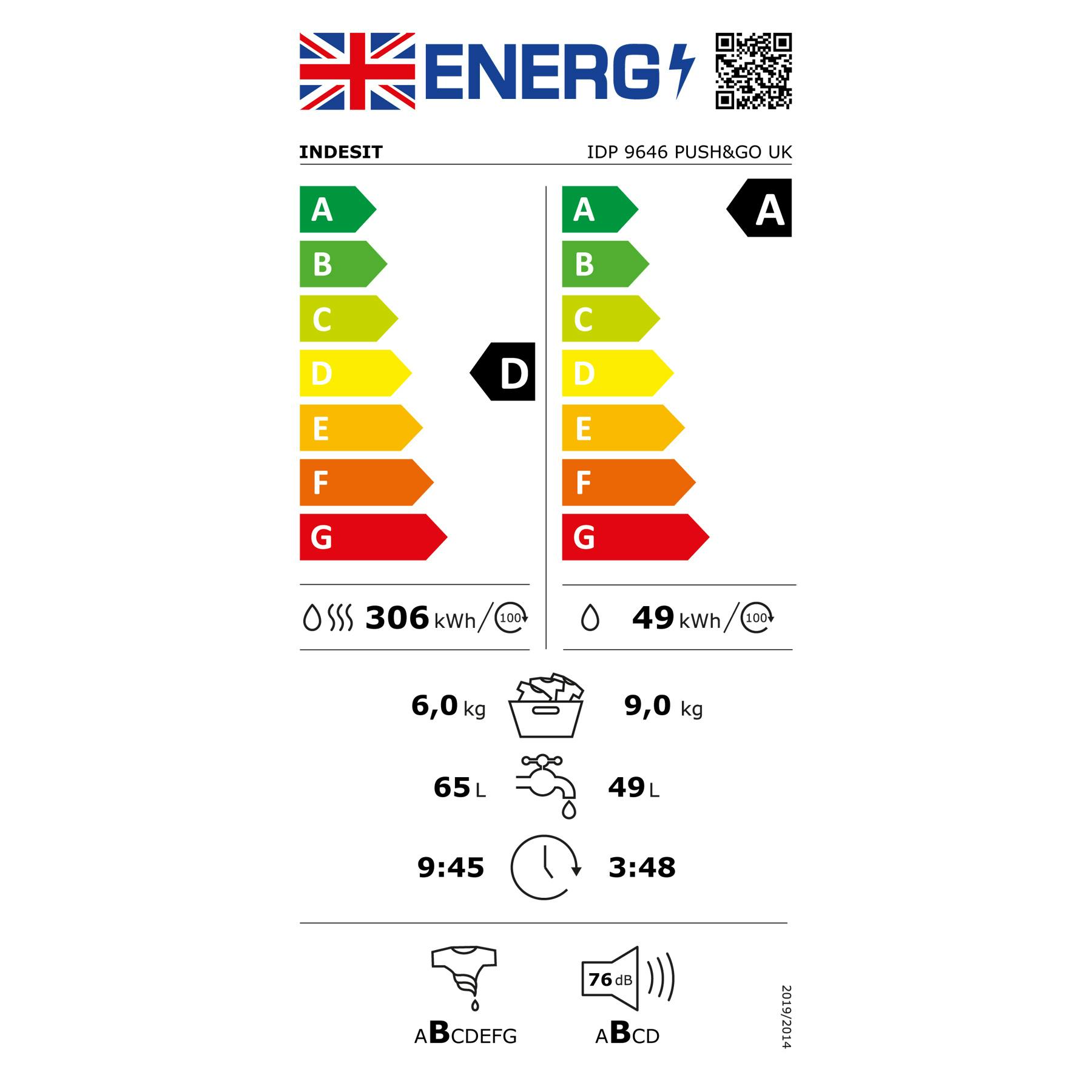 Indesit IDP9646PUSH Washer Dryer in White 1400 Spin 9kg/6kg D Rated Push&Go Cycle