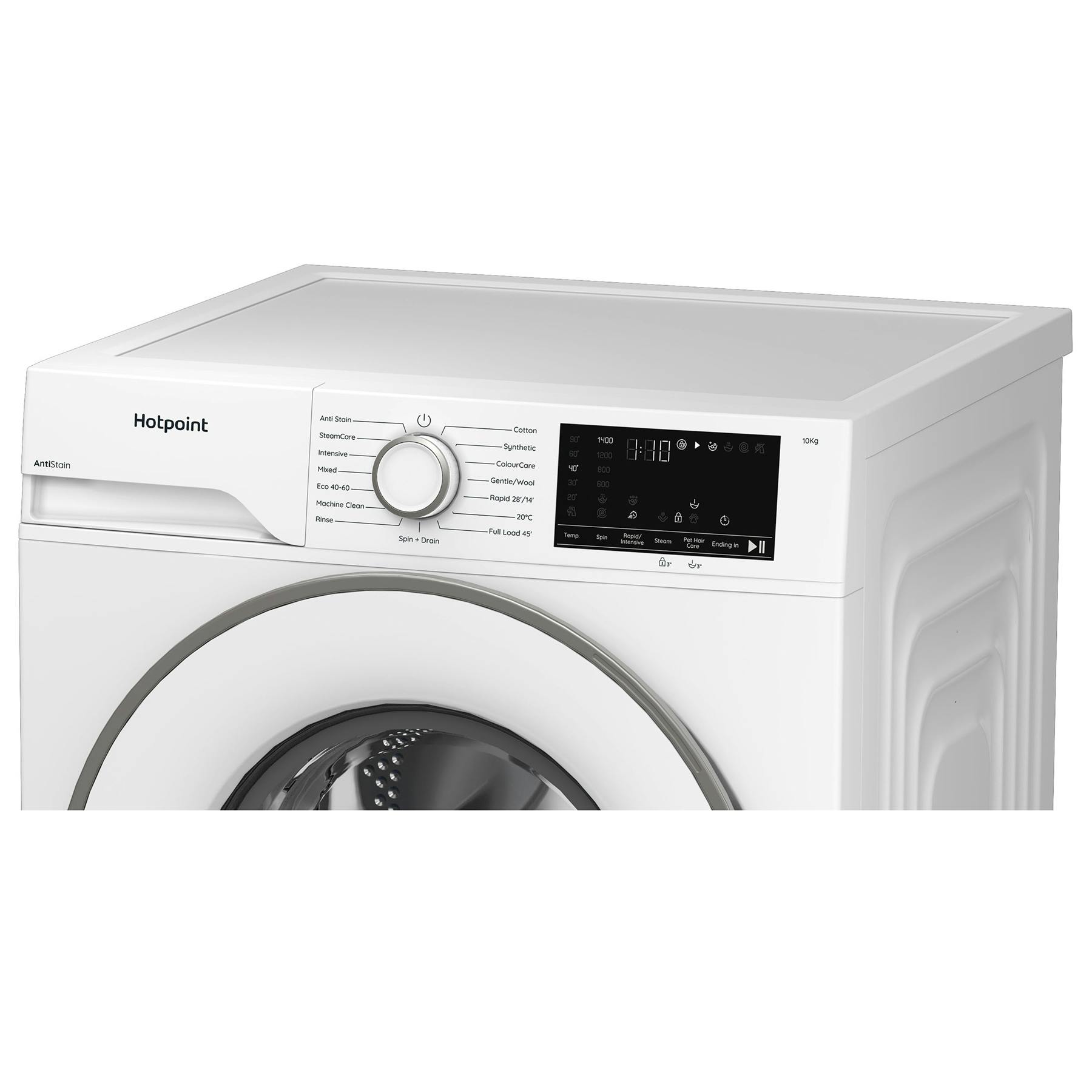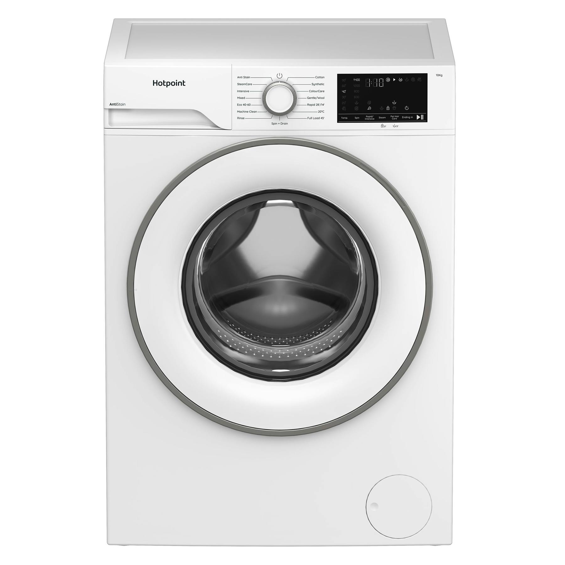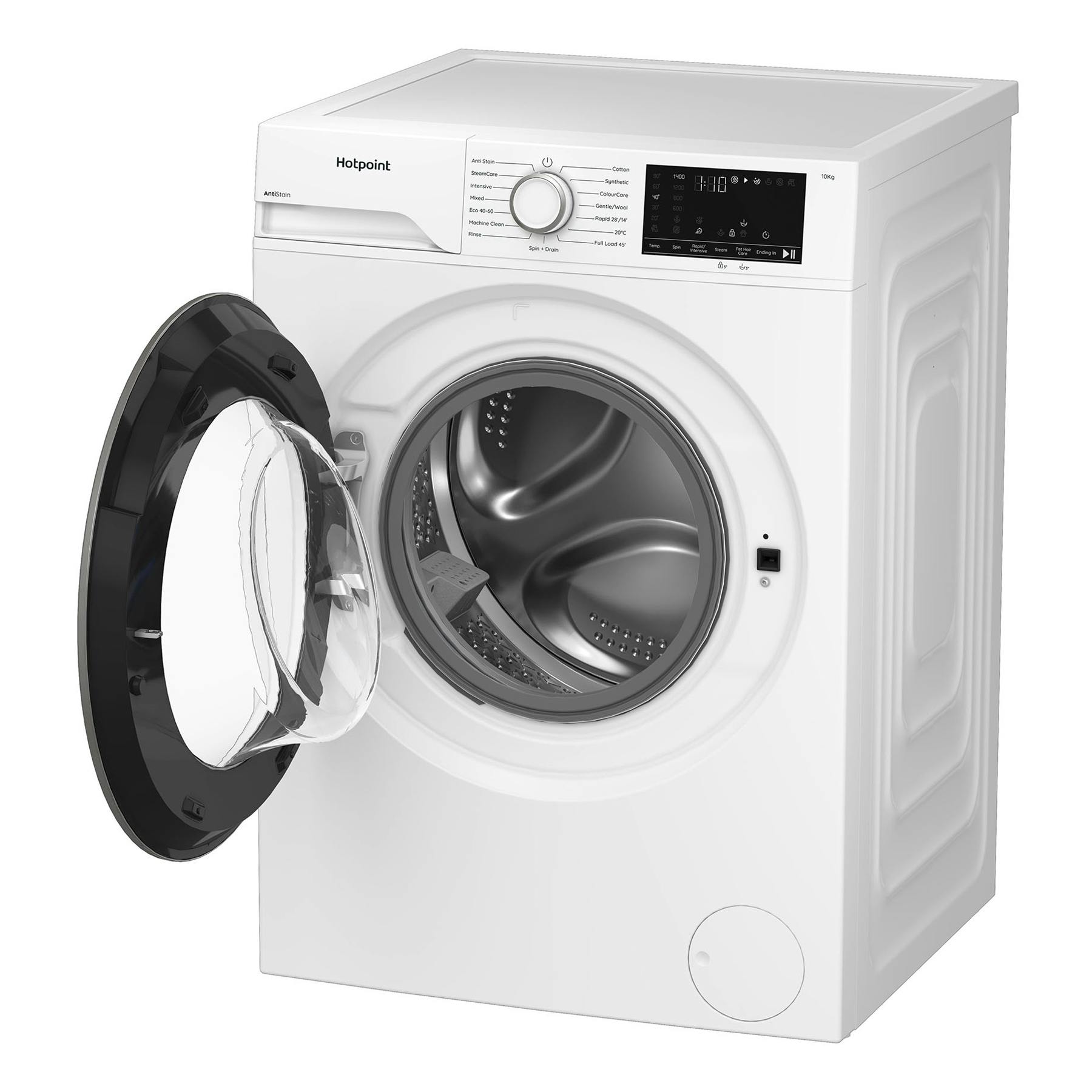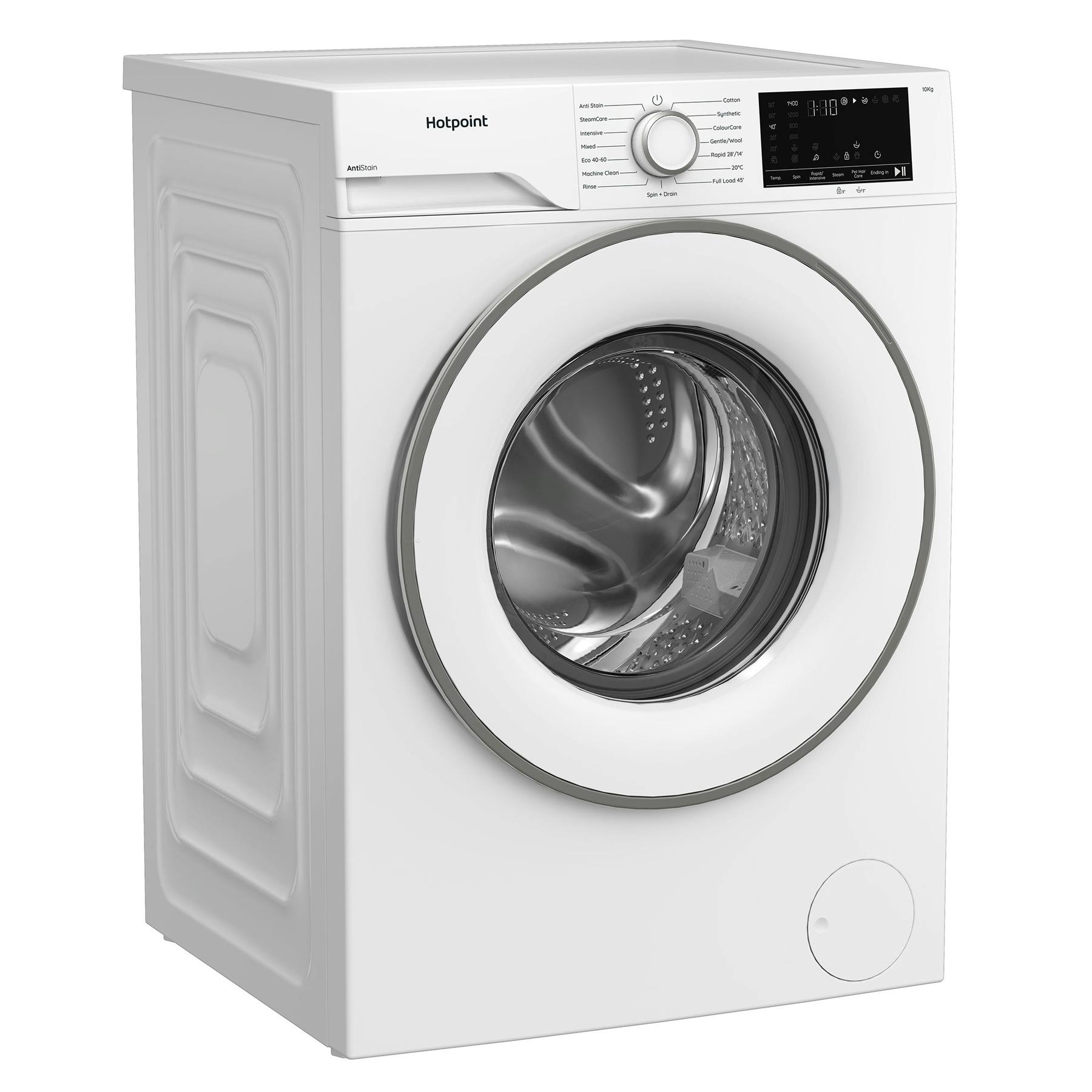 Hotpoint H101ANTISTA 10kg 1400 Spin Washing Machine in White A Rated Pet Hair Care with SteamCare Cycle