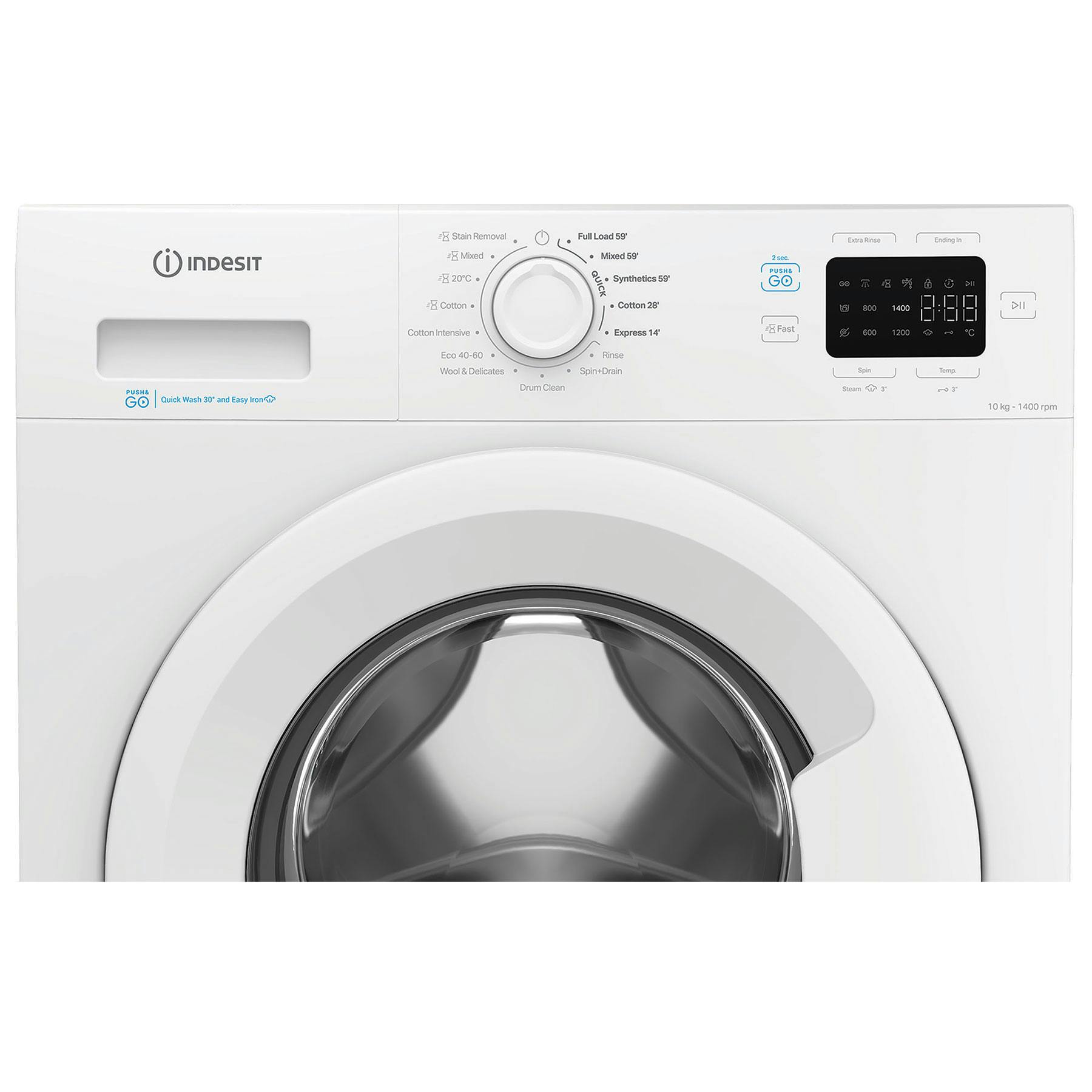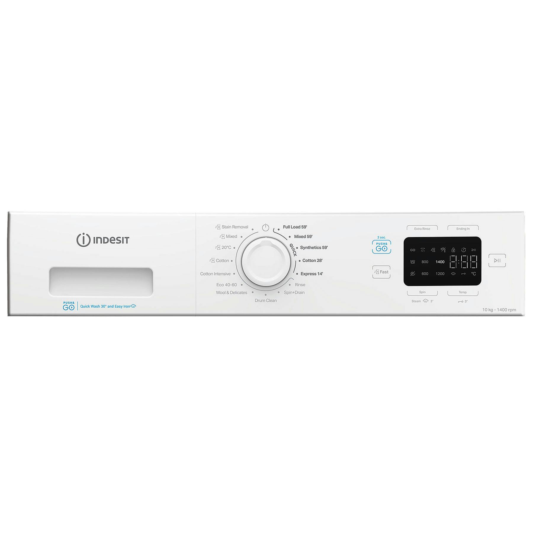 Indesit IP1046PUSHGO 10kg 1400 Spin Washing Machine in White A Rated Push&Go with Steam Cycle