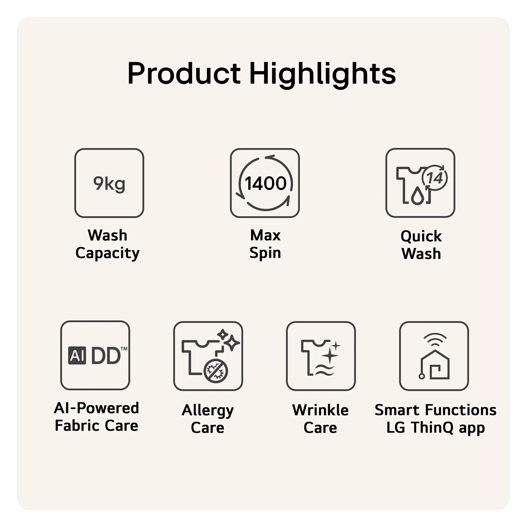 • LG F4X9009TBC 9kg 1400 Spin Washing Machine in Matte Black A Rated Th