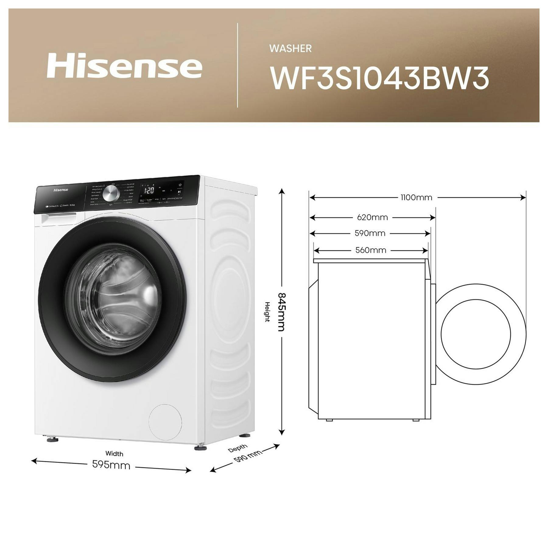 • Hisense WF3S1043BW3 10.5kg 1400 Spin Washing Machine in White A Rated Conne