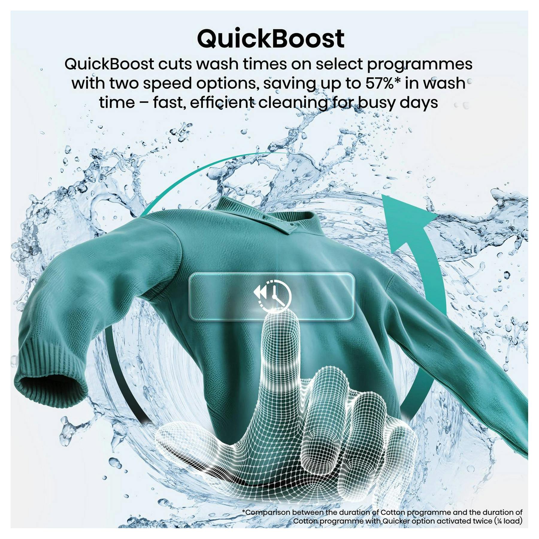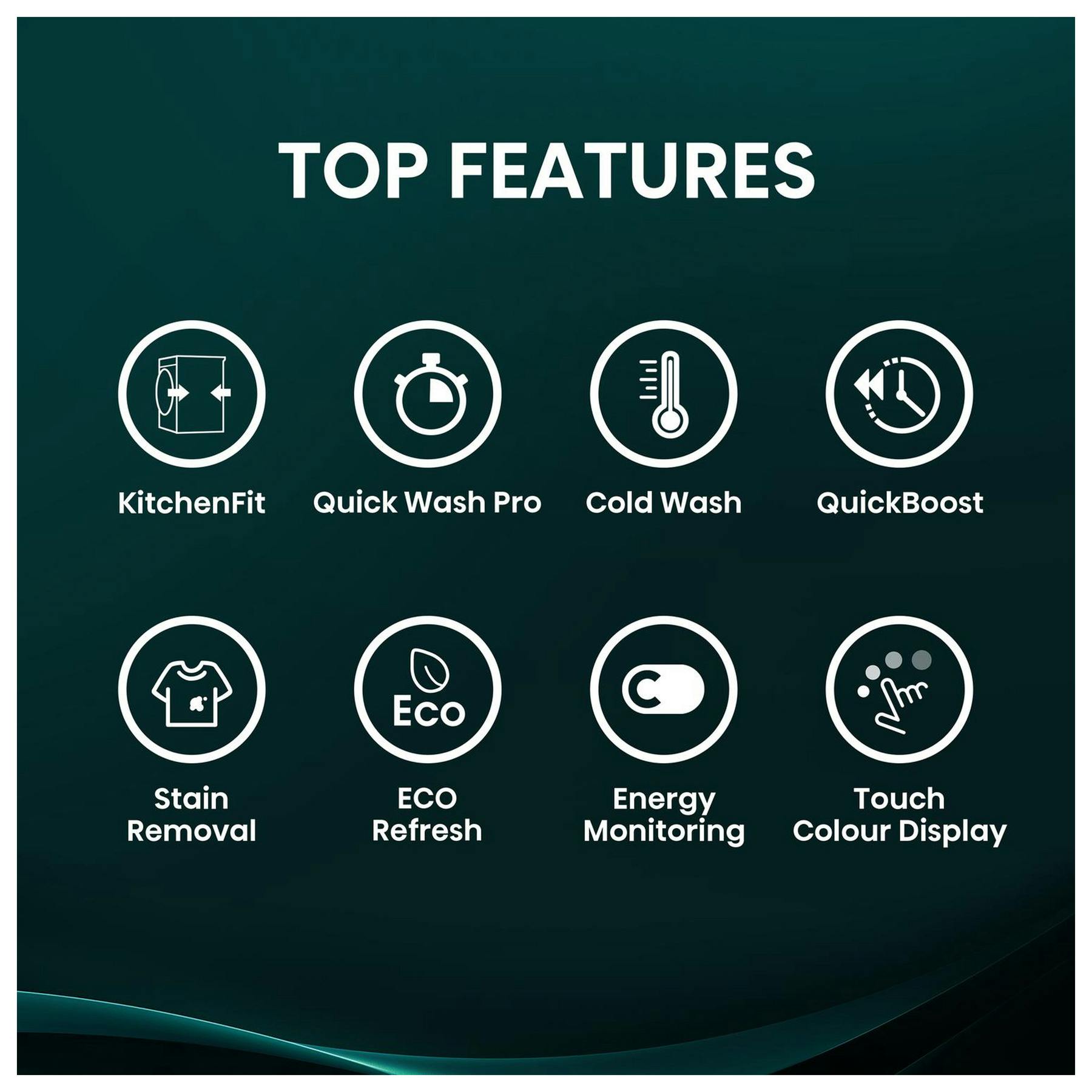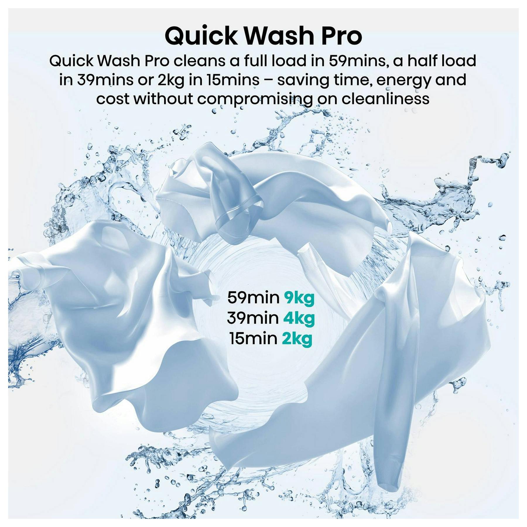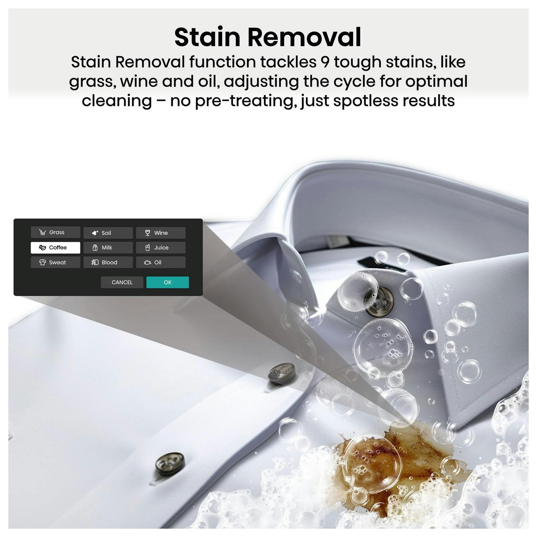 Ideal for busy households, this model includes Quick Wash Pro, offering wash cycles tailored to various load sizes—complete a full wash in under an hour or a small load in just 15 minutes. The Cold Wash function uses cold water with extended cycles to reduce energy use by up to 71%, making it an eco-friendly and cost-effective choice. Its Stain Removal feature targets nine common stains by adjusting wash parameters automatically, saving time and hassle.