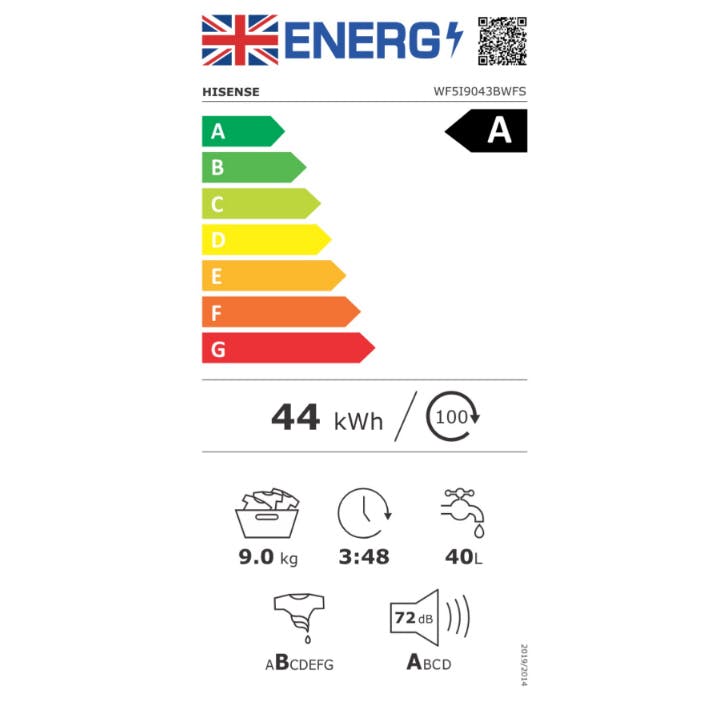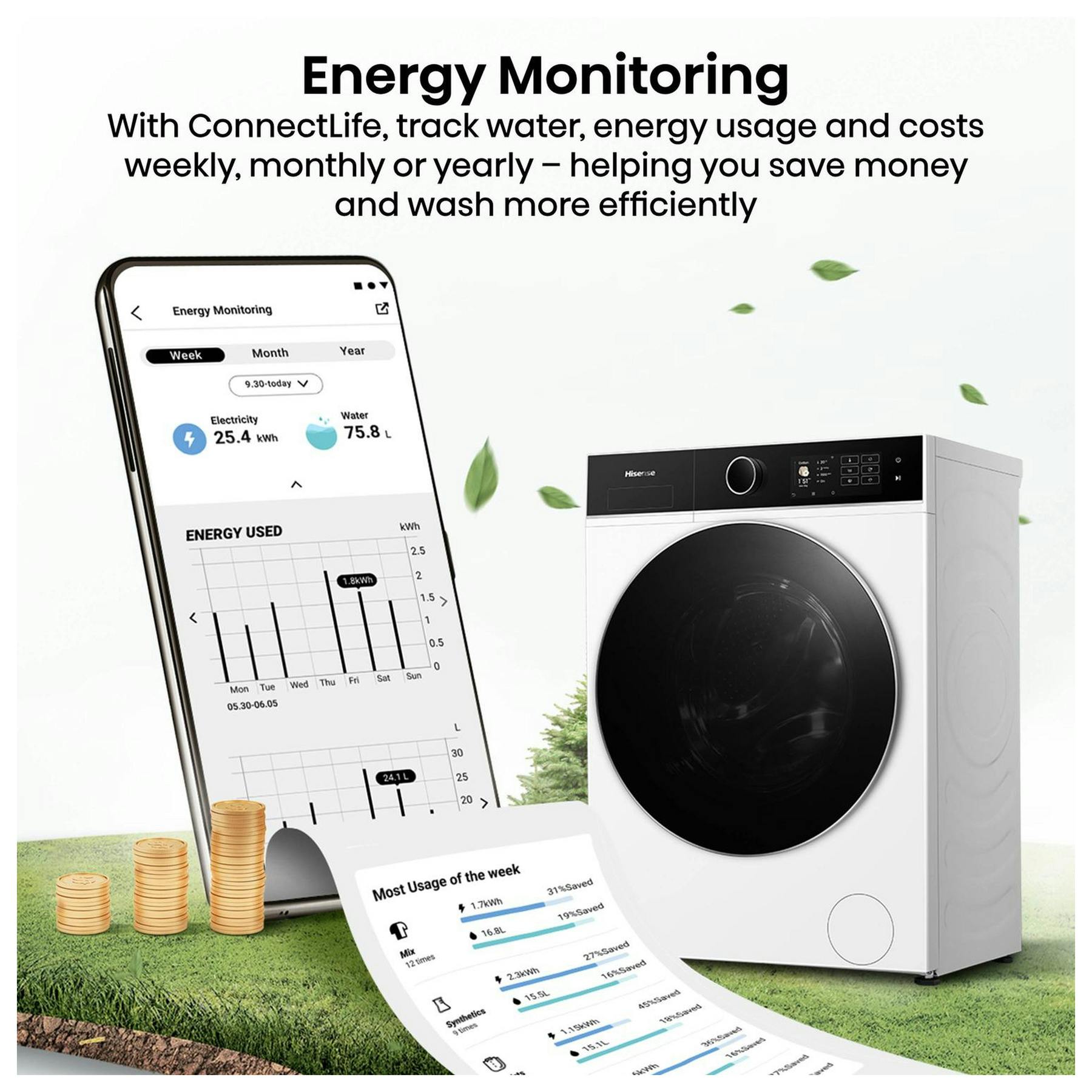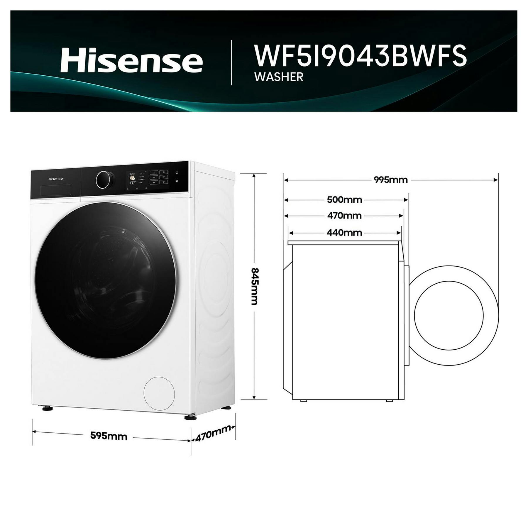 Hisense WF5I9043BWFS 9kg 1400 Spin Washing Machine in White A Rated Kitchen Fit with Connect Life Smart App Control