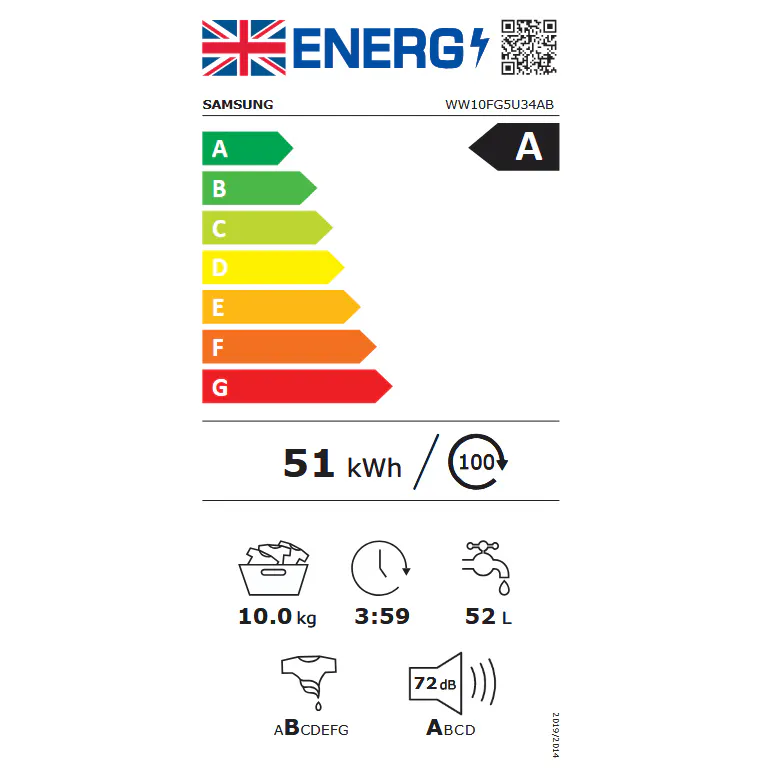 • Samsung WW10FG5U34AB Series 5 10kg 1400 Spin Washing Machine in Black A Rate
